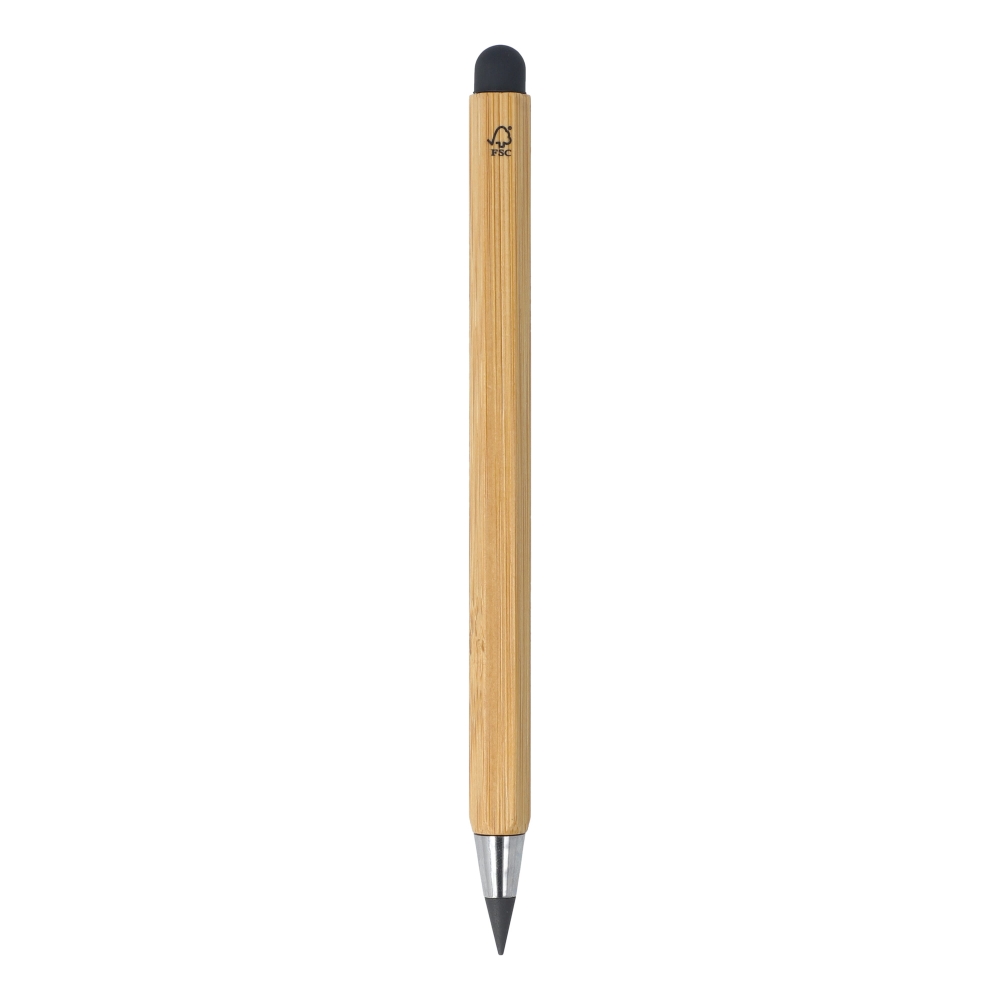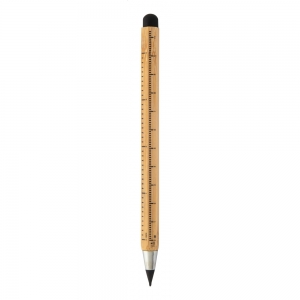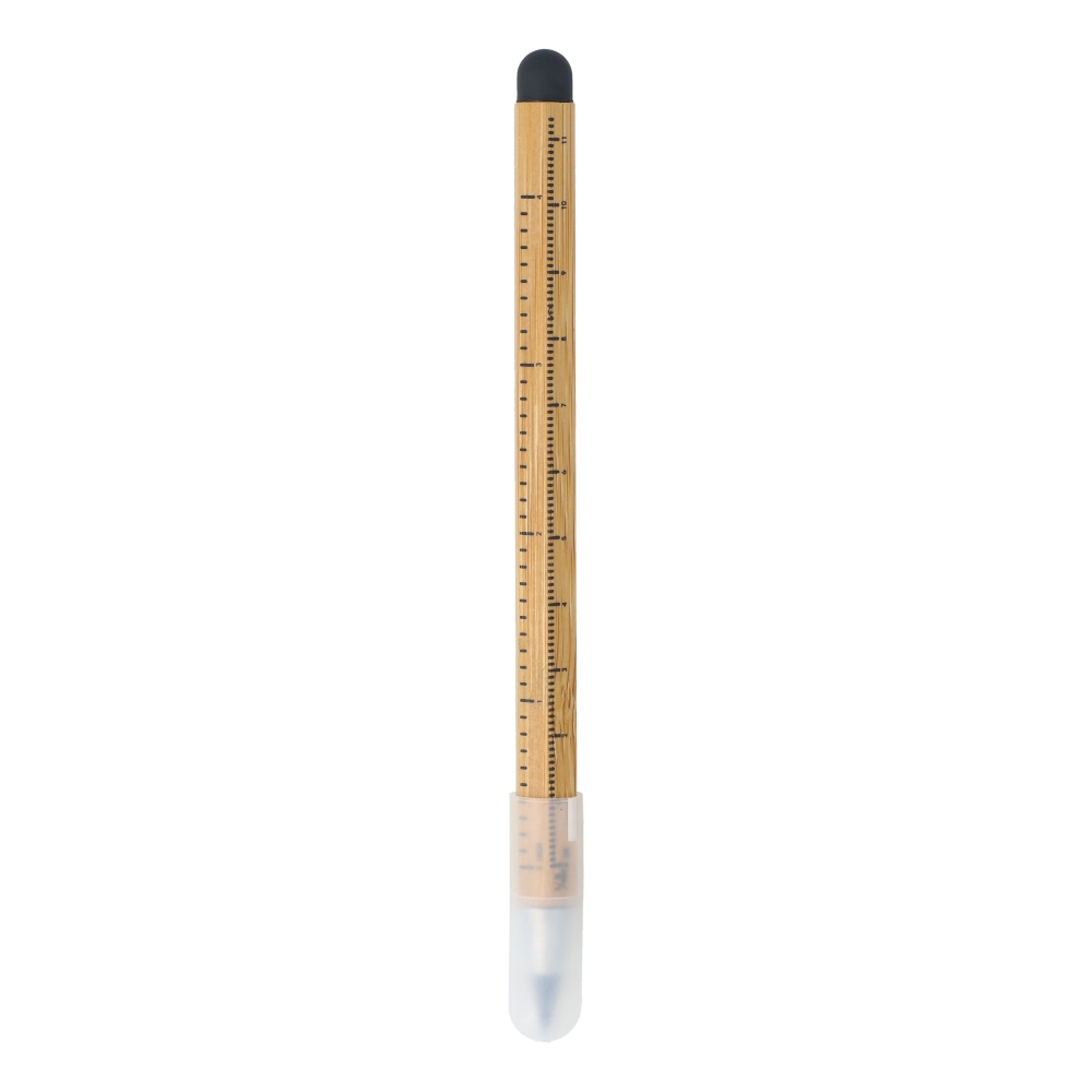 Langlebiger, tintenloser Stift aus Bambus mit Touch-Stylus und Metalllegierungsspitze, die das Papier oxidiert. Mit sechseckigem Schaft inklusive 11 cm und 4 Zoll Linealen. Dieser Stift schreibt ähnlich wie ein Bleistift und ist zudem radierbar.