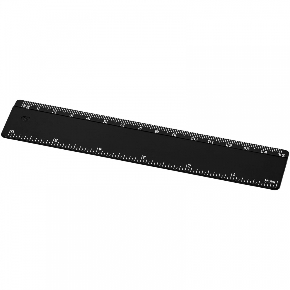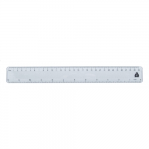 Stabiles Lineal aus recyceltem Kunststoff verfügbar mit Markierungen in Zoll und Zentimeter.