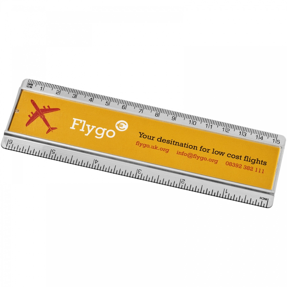 Flexibles Kunststofflineal (15 cm) mit vollfarbiger Bedruckung. Der Preis ist inkl. UV-Druck auf einer Seite. Mindestmenge: 100 Stk.