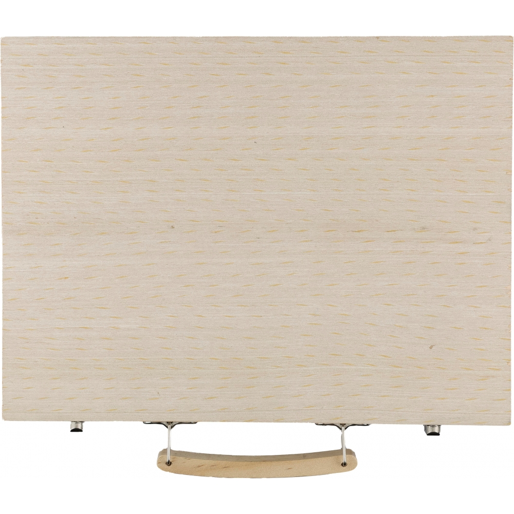 Holz-Malkasten MONET, 88-teilig: mit Buntstiften (angespitzt), Wachsmalstiften, Wassermalfarben und Pinseln, Radiergummi, Anspitzer, Lineal – im Holzkasten mit Schnappverschlüssen und Tragegriffen