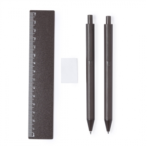 Das Set KOPIKO besteht aus einem Stift, einem Druckbleistift und einem Lineal aus Kunststoff mit Kaffeebohnen und einem klassischen Radiergummi. Produktabmessungen: 141 x ⌀ 10 mm (Stift); 142 x ⌀ 10 (Bleistift); 165 x 34 x 13 mm (Etui), 160 x 30 x 0,6 mm (Lineal)
