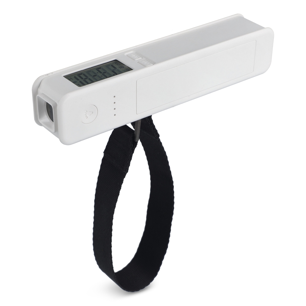 Diese 5-in-1-Multifunktions-Powerbank vereint Gepäckwaage, Taschenlampe, Lineal, Temperaturmesser und 2600-mAh-Akku. Wiegt bis zu 50 kg, misst in cm und °C – ideal für unterwegs. Aus recyceltem ABS, perfekt für Reisen.
