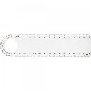 Lineal aus Kunststoff (2 x 15 cm) mit Lupe und Winkelmesser.