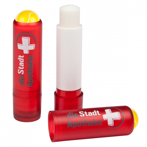 Hochwertige Lippenpflegestifte mit Werbedruck sind sehr beliebte Langzeit-Werbeträger. Unsere Lippenpflege-Kollektion ist speziell unter der Maßgabe einer besonders guten Qualität und unter Verwendung ausschließlich pflanzlicher Wachse und Öle hergestellt. Die Pflegestifte sind frei von petrochemischen Substanzen. Sollten Sie besondere Gestaltungswünsche haben, stehen wir Ihnen mit unserer hauseigenen Grafikabteilung hierfür gerne zur Verfügung. Bitte rufen Sie uns einfach an und erklären uns Ihre Wünsche. Auch die Produktion größerer Mengen von Lippenpflegestiften lässt sich in kurzer Zeit realisieren. Für Fragen und Informationen stehen wir Ihnen unter der Rufnummer Tel. 0049 (0)5121 69707-0 gerne zur Verfügung.