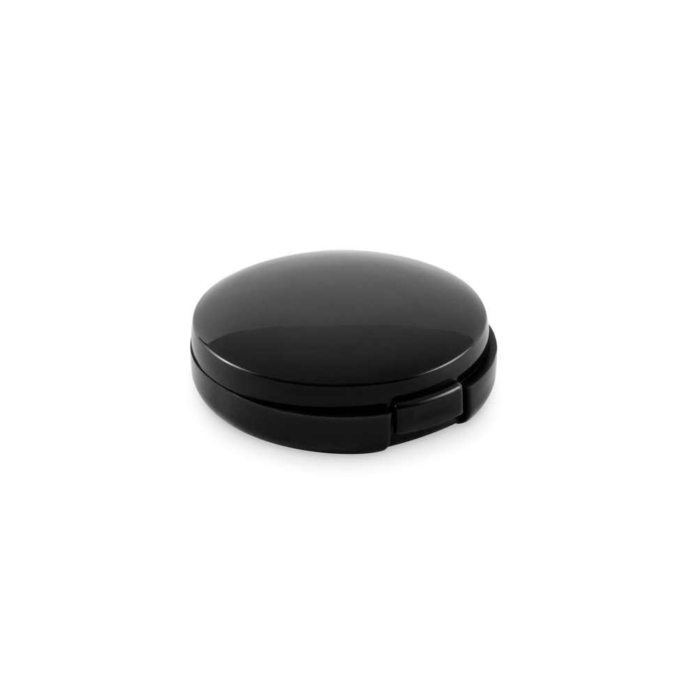 Kosmetiksalon in klein: Lippen nachziehen, Nase pudern - der kleine Spiegel macht´s möglich. Der Clou ist jedoch die Haarbürste, die einfach durch Druck auf die Gummifläche aktiviert wird. Mit schöner Werbefläche! (für beide Varianten) Kunststoff, silber, Spiegel, REFLECTS Verpackung Maße: 75 x 68 x 27 mm