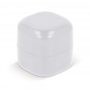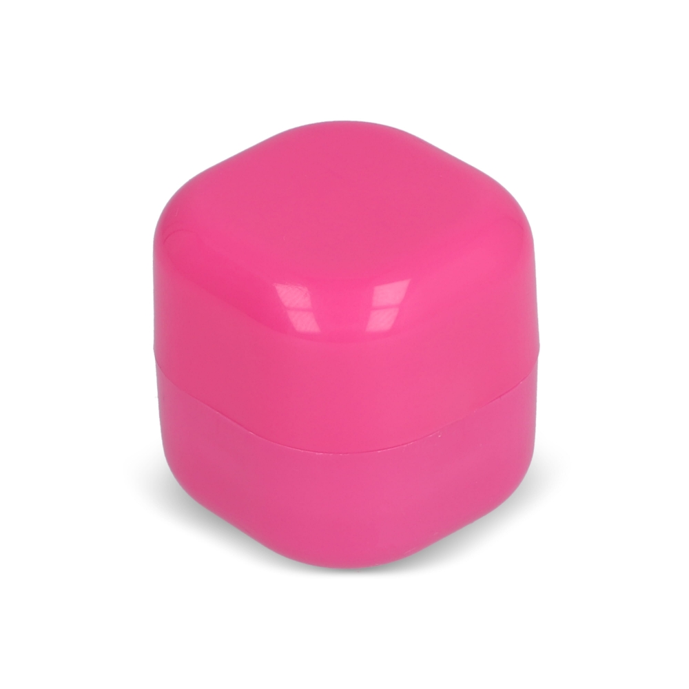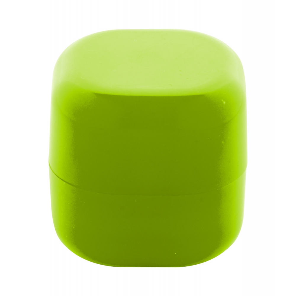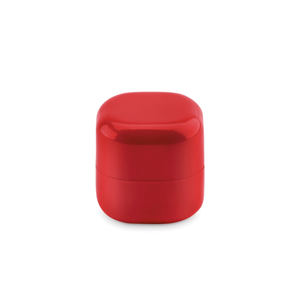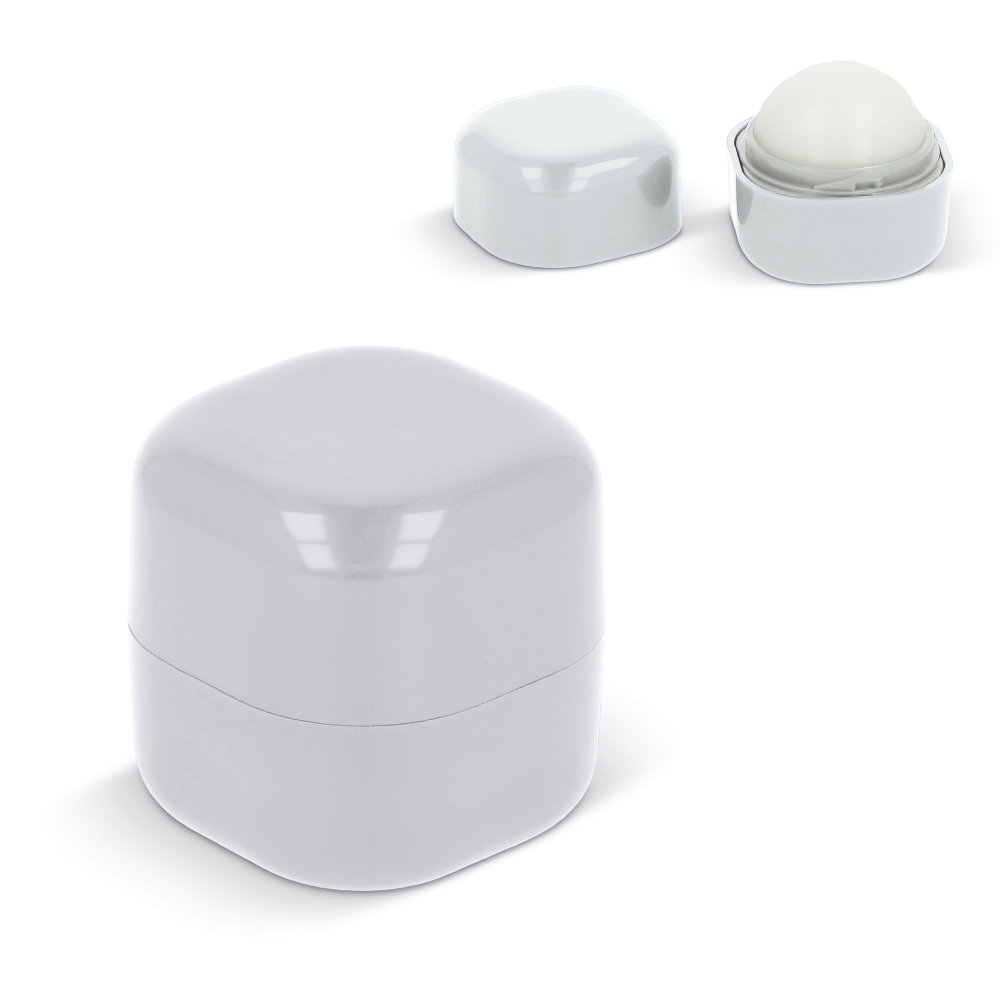 Lippenbalsam in einem würfelförmigen Behälter aus recyceltem ABS. Die abgerundete Kugelform im Inneren sorgt für ein sanftes Auftragen der feuchtigkeitsspendenden Pflege.