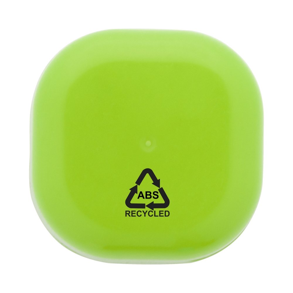 Ausführung: Farbe: Grün Gewicht: 0,0186 kg Maße: 3,5 x 3,5 x 3,5 cm Menge pro Karton: 500 Gewicht pro Karton: 10,3 kg Material: Recycelter ABS-Kunststoff Zolltarifnummer: 3304990000 EAN / GTIN: 4067628625486