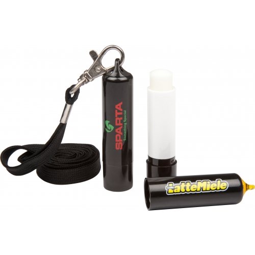 Ein toller Werbeartikel, der Ihre Lippen zum Glänzen bringt! Unser hochwertiger Lippenpflegestift mit pflanzlichen Ölen und Wachsen und frei von petrochemischen Substanzen kommt hier zusammen mit einer praktischen Öse sowie einem unbedrucktem Lanyard mit Sicherheitsverschluss (Lanyard an Öse montiert). Der Sicherheitsverschluss öffnet sich auf Zug und beugt so Unfallgefahren vor. Mit natürlichem Lichtschutz (LSF 20). Standardfarben (Lanyard): weiß, orange, rot, blau, schwarz. Gehäusefarbe: weiß. Lanyards ab Mindestbestellmenge 1000 St. individuell bedruckbar lieferbar. Auch in der Gehäusefarbe Schwarz (Art.Nr. 11341146-12) erh&a ...