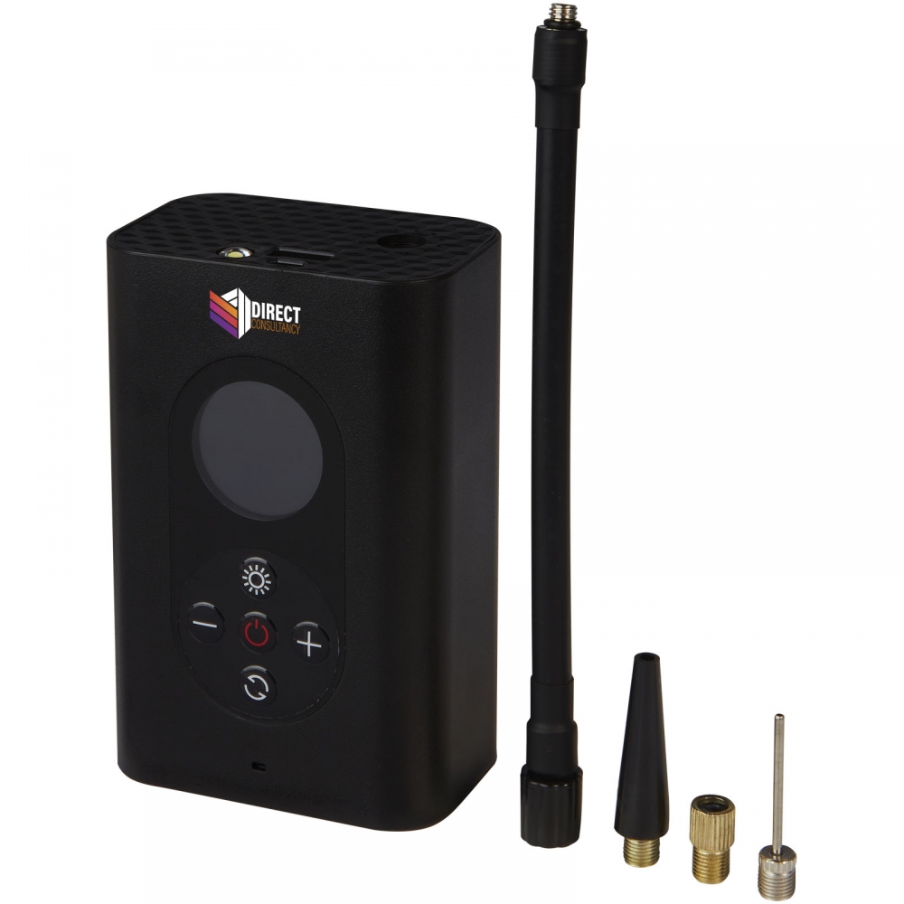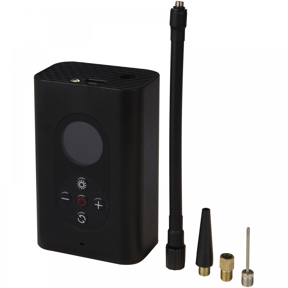 Artikel-Nr: CPO12426790Mit dem tragbaren Pilot-Luftkompressor können Sie unterwegs Auto- / Motorradreifen oder einen Fußball oder Ballon aufpumpen. Der integrierte 4000-mAh-Polymer-Akku bietet bis zu 35 Minuten Nutzungsdauer mit einer einzigen Ladung. Maximaler Luftdruck: 150 PSI (990 KPa). Verfügt über ein großes LCD-Display und 4 voreingestellte Modi: Auto, Ballon, Motorrad und Ball. Inklusive Zubehör für die verschiedenen Ventile. Der Luftkompressor kann auch als Notfall-Powerbank mit 5 V/1 A Ausgang verwendet werden. Der Kompressor ist in 3 Stunden von 0 auf 100 % aufgeladen. Er wird mit einer Tasche für einfachen Transport und Aufbewahrung geliefert ...