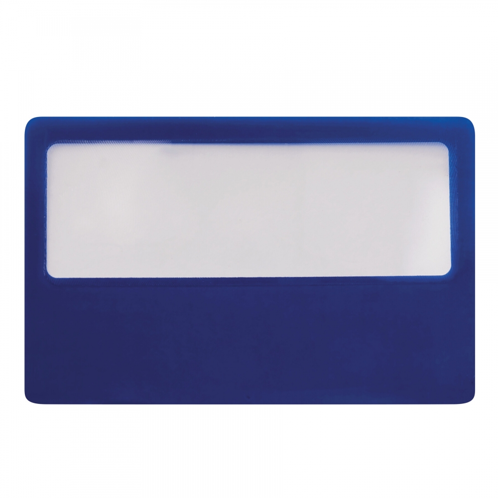 Leselupe im Scheckkartenformat mit Lineal an der Oberseite. Idealer Mailingverstärker oder Zugabeartikel (leicht + flach). Ihre Werbung drucken wir auf das weiße Feld.