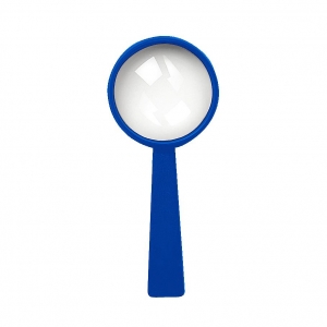 Lupe aus stabilem Kunststoff mit einem Durchmesser von 60 mm, 4-facher Vergrößerung und Stiel zum bequemen Halten. Mit spezieller, asphärischer Linse.