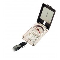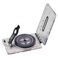 Peilkompass mit Spiegel. Fassung aus transparentem Plastik. Rotierende Kapsel aus Plastik mit weißer Gradanzeige auf schwarzem Ziffernblatt zum leichten Ablesen. Großer Spiegel mit V-förmiger Peilhilfe. Leuchtende Ablesepunkte. Lupe, Maßstab in cm und Zoll. Geliefert mit Bändchen.