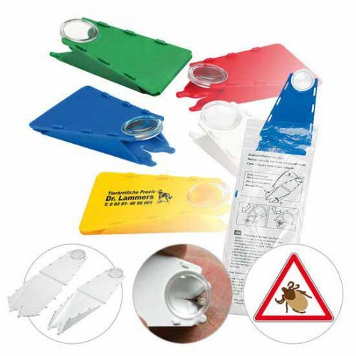 Zeckenentferner mit Lupe "Duo" praktisches, flaches Format, mit zwei Kerben. Besonders geeignet für Mailings