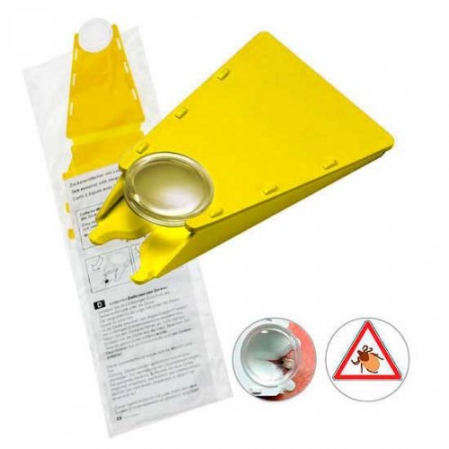 Diese praktische, flache Karte rückt den kleinen Blutsaugern auf die Pelle. Einfaches Entfernen von Zecken mittels der beiden Schlitze an den Ecken. Mit der integrierten Lupe lässt sich danach leicht feststellen, ob das Spinnentier komplett beseitigt wurde.