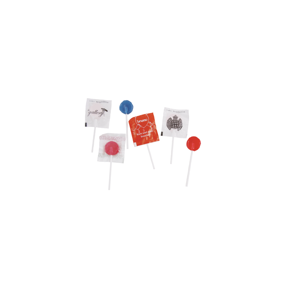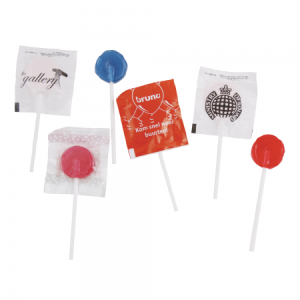 Artikel-Nr: 4283413-4-t1 Lutscher (ca. 13 g) verpackt in transparenter Folie, rundum bedruckt. Erhältlich in verschiedenen Geschmacksrichtungen. Haltbarkeit: 18 Monate, Lieferzeit: ca. 4 Wochen, Preise inkl. 4-farbigen Druck, zzgl. Drucknebenkosten