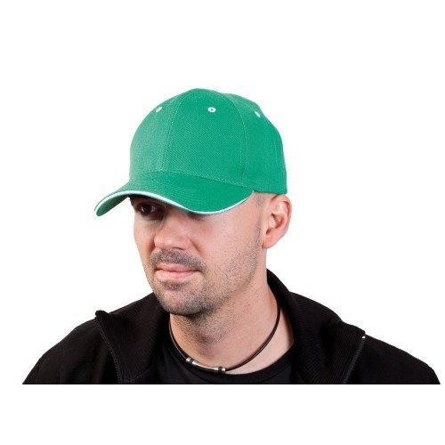 Baseball Cap im 6-Panel-Stil aus gekämmter Baumwolle in einer Vielzahl von kräftigen Farben. Mit farbigem Kontrastband und gepolstertem Visier sowie umstickten Belüftungslöchern und verstellbarem Klettverschluss.