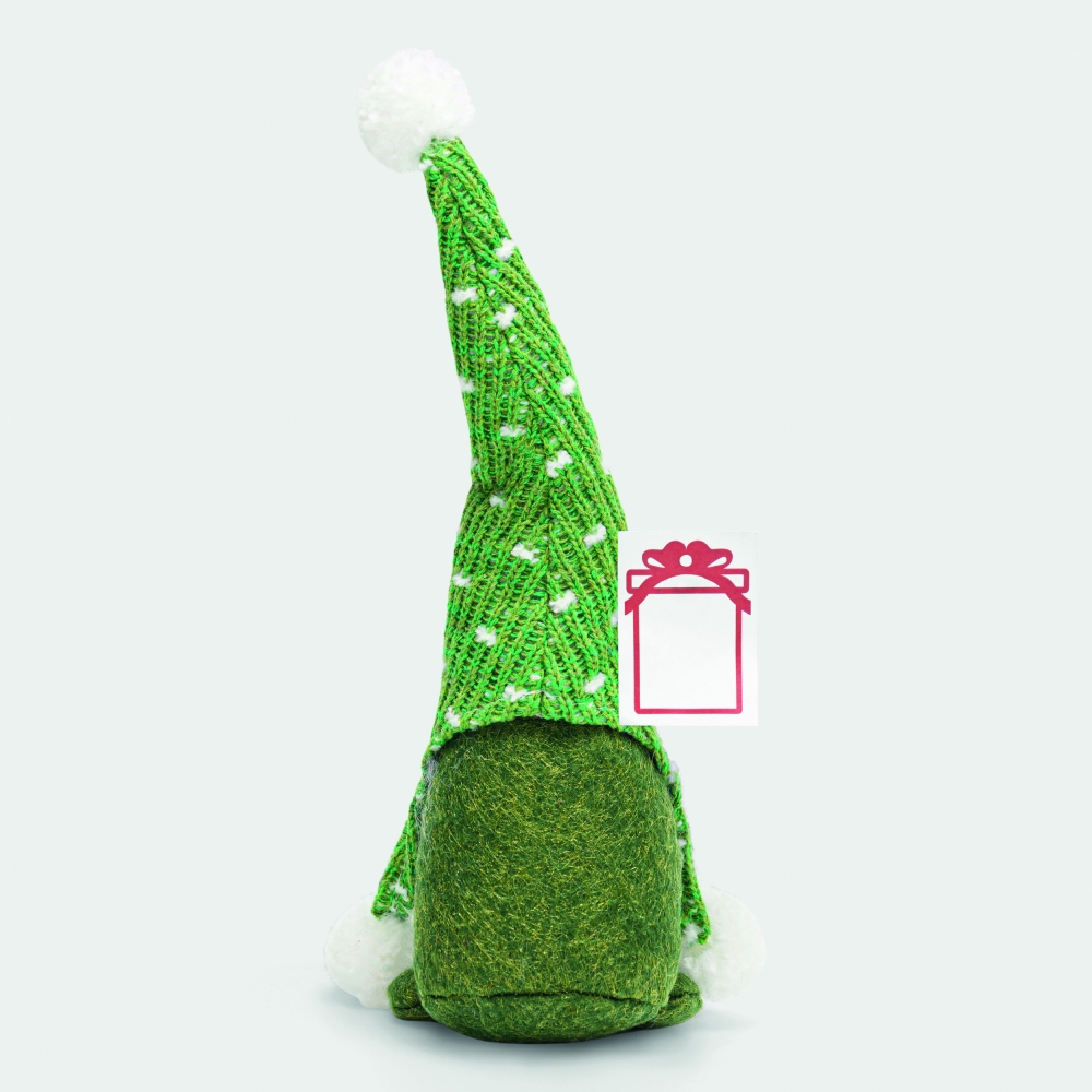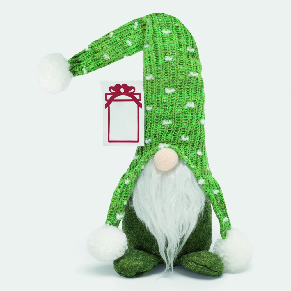Weihnachts-Wichtel FRANZ: Woll-Zipfelmütze mit weißen Bommels, Mütze lässt sich durch integrierten Draht beliebig formen, Deko-Figur zur Beschwerung mit Kies gefüllt für einen sicheren Stand, mit Geschenkanhänger zum Bedrucken
