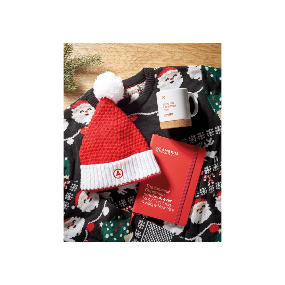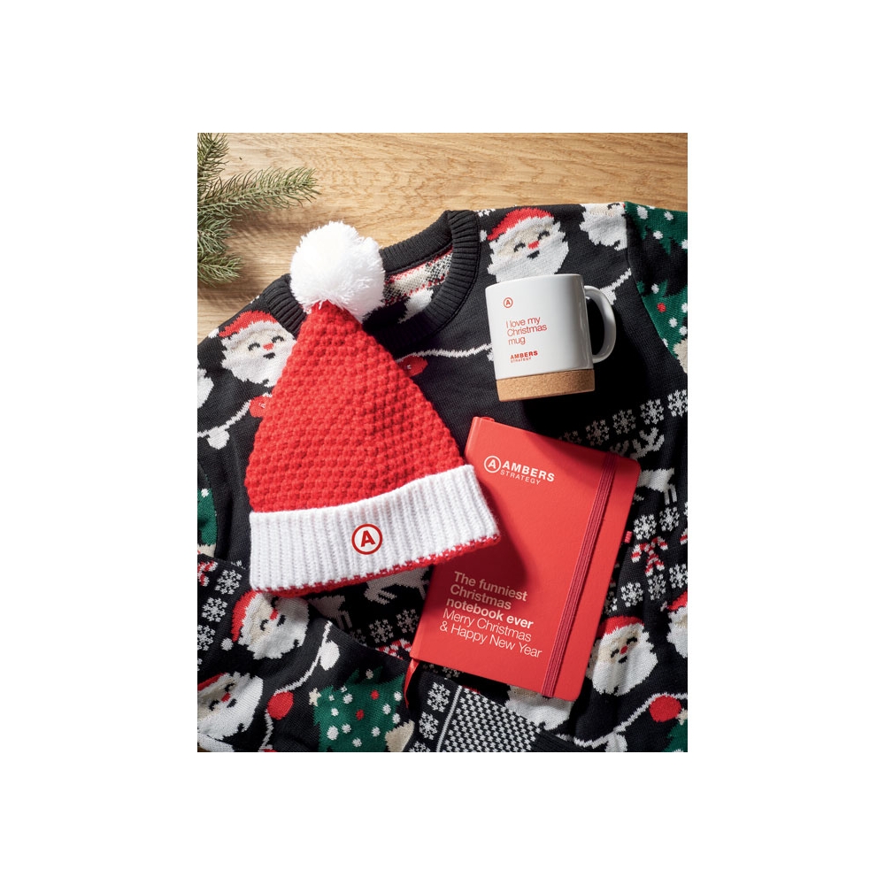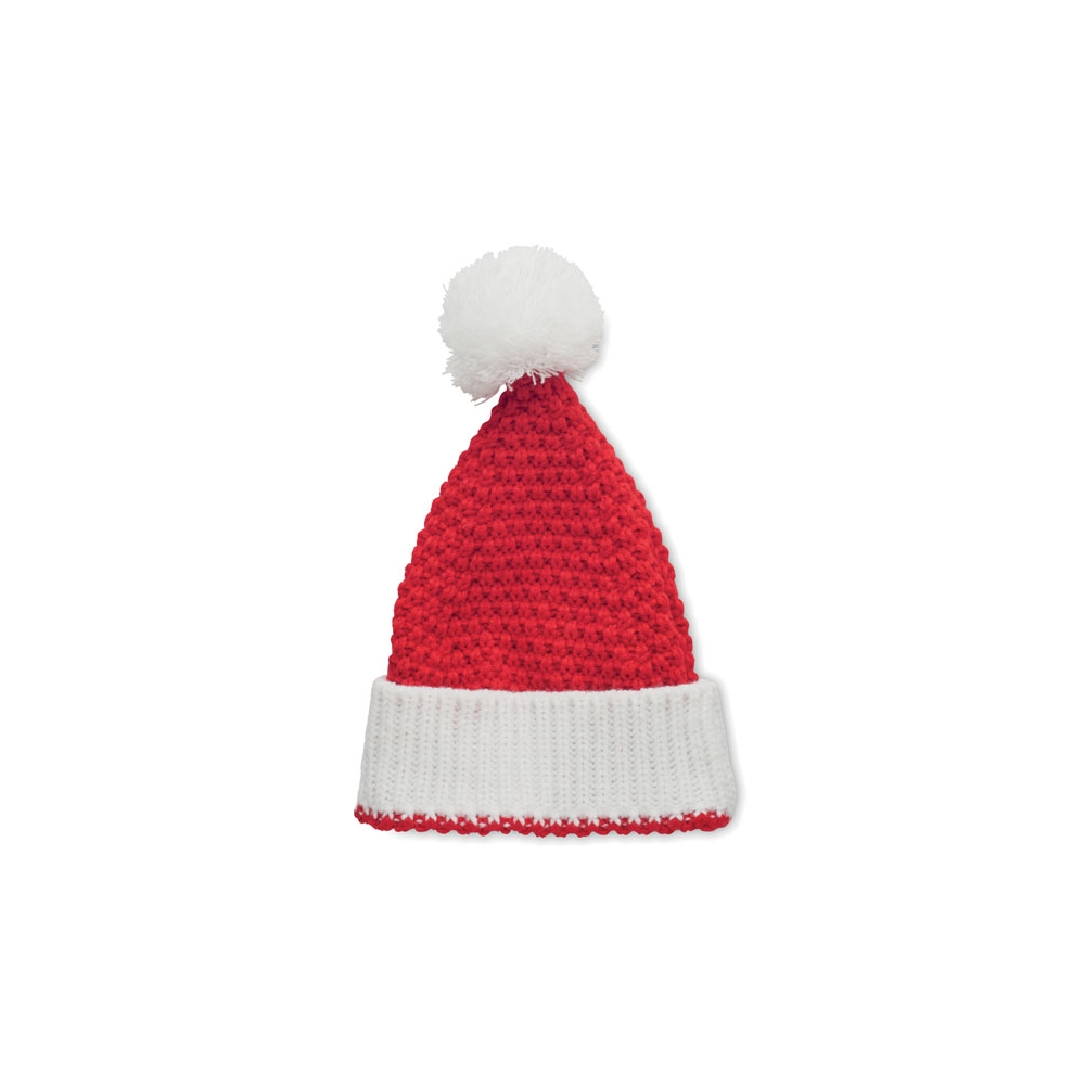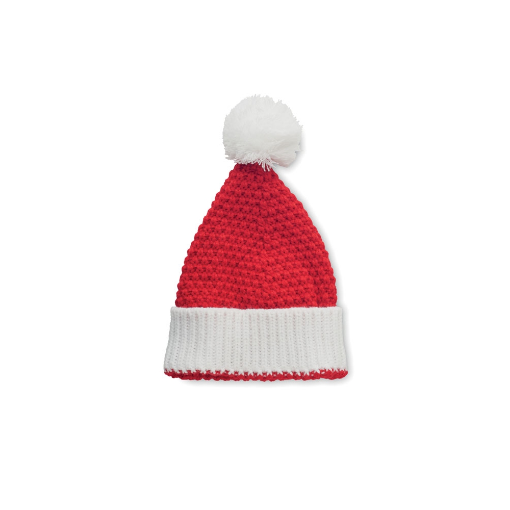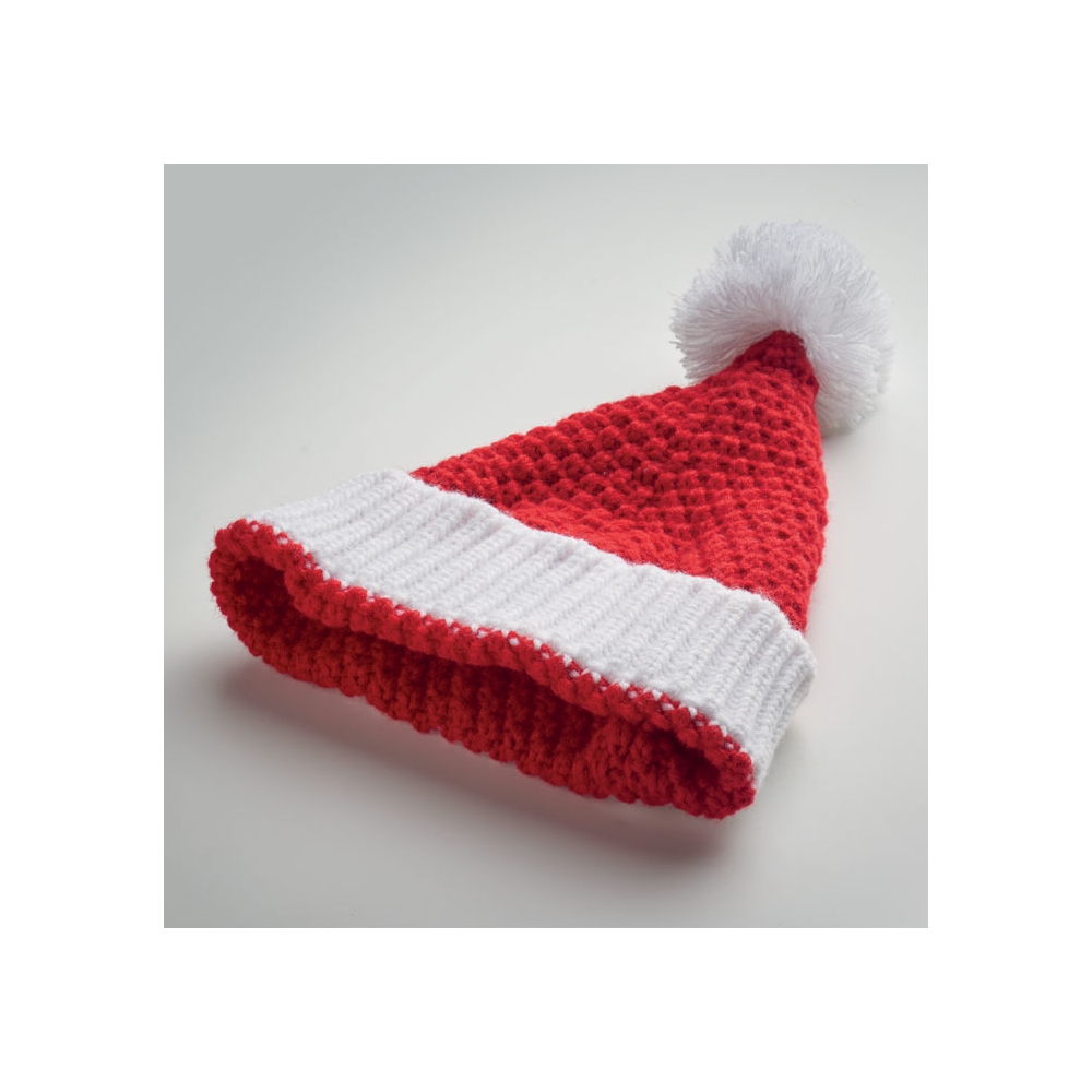 Gestrickte weihnachtliche Wintermütze aus Acryl mit Bommel.