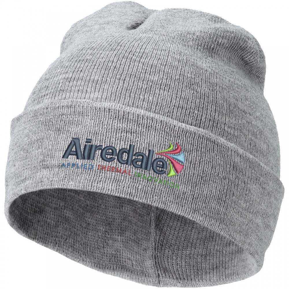 Weiche und warm gestrickte Bobmütze aus doppellagigem, elastischem Polyester. Mit farblich passendem Stirnband für das Branding. In einer breiten Farbpalette erhältlich.