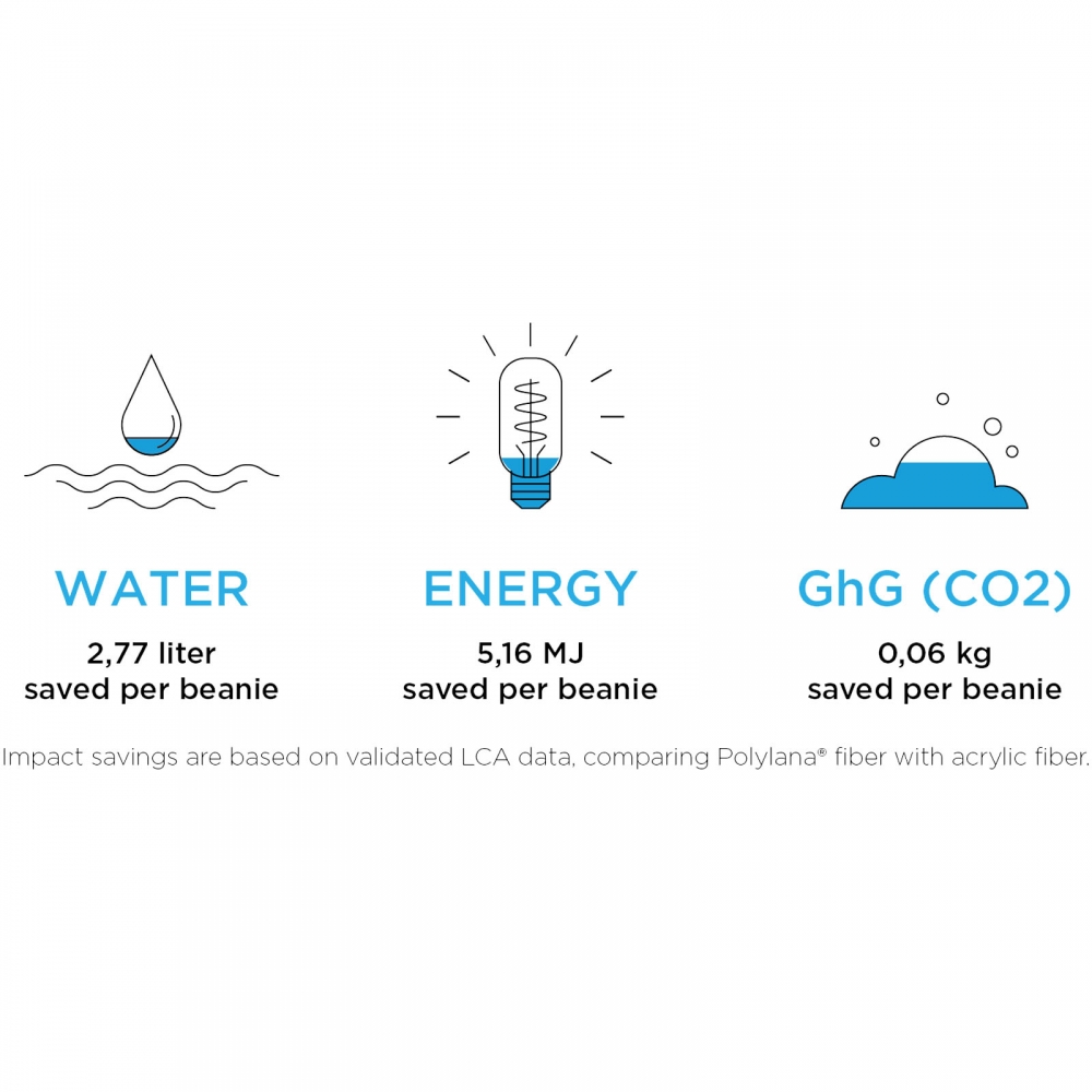 Die Hale Mütze besteht aus Polylana® Fasern - einer umweltfreundlichen Alternative zu 100% Acryl- und Wollfasern - und spart so Wasser, Energie und reduziert den CO2-Ausstoß während des Produktions- und Färbeprozesses. Im Vergleich zu Acrylfasern werden für jede Hale Mütze folgende Einsparungen erzielt: 2,77 Liter Wasser, 5,16 MJ Energie und 0,06 kg GhG (CO2). Die Einsparungen basieren auf validierten Daten der Ökobilanz (LCA). Hergestellt aus 1 x 1 Rippstrick mit Polylana® Fasern und Acryl mit einer Dichte von 12 Gauge. Die ideale Wahl für alle, die Wert auf Mode legen und gleichzeitig die Umwelt schonen wollen.