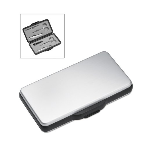 6-teiliges Maniküre-Set aus Metall in einem rechteckigen Etui aus PU.