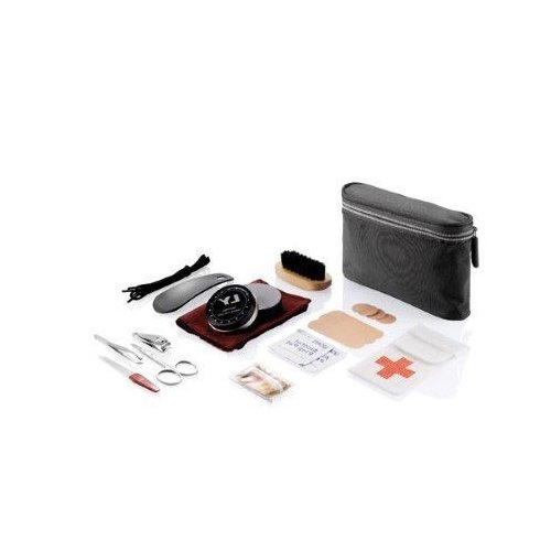 500D Ripstop, Etui inkl. Näh-, Maniküre-, Schuhputz- und 13tlg. Erste Hilfe Set (konform EN 13485:2503). Farbe: schwarz Maße (cm): 3,5 x 16 x 9 Gewicht (g): 208 Druckfläche (mm): 60 x 40