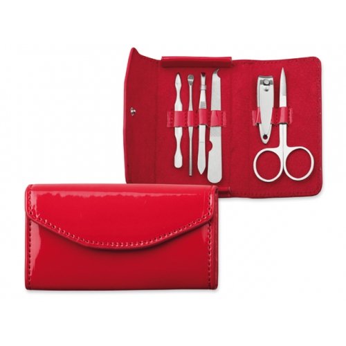 Maniküreset AMELIE, 6-teilig: bestehend aus Nagelschere, Nagelfeile, Pinzette, Nagelschaber, großem und kleinem Nagelknipser, im rechteckigen Etui mit Seitknopfverschluss