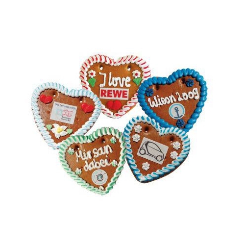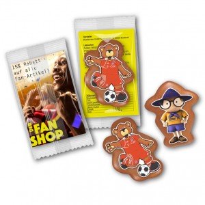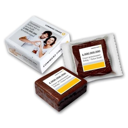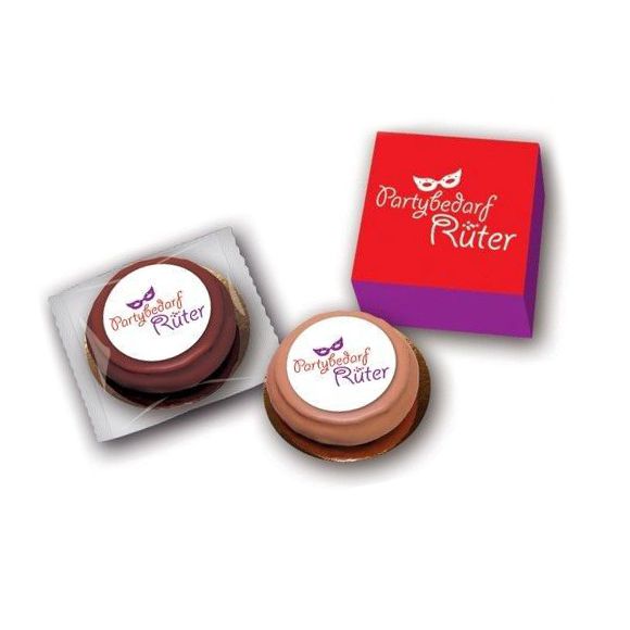 Werbeanbringung: 4-farbig auf Marzipan, Druckbereich: 2,5 cm rund, 4 x 1,5 cm, 2,5 x 2,5 cm, 3 x 2,3 cm