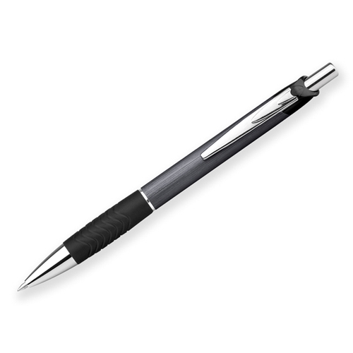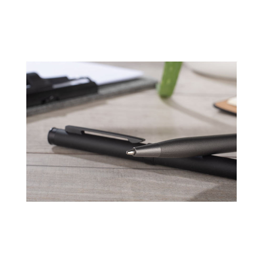 Schwarzer Aluminiumkugelschreiber mit griffigem Rubberfinish, blauschreibender Mine und Touchfunktion an der Spitze. Der schwarze Body wird durch eine farbige Touchgummierung in vielen Varianten ergänzt – ideal für Gravuren, welche hier in den passenden Farben zum Touchpen rauskommen und perfekt für den Alltag sind! Ihr Logo wird auf dem Schaft platziert.