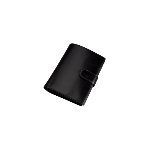 Reiseorganizer Druckknopfverschluss, Metallkugelschreiber, Block, Reißverschlussfach, Klarsichtfach, drei Einschubfächer, acht Visiten- bzw Kreditkartenfächer, Reisepasshalter, zwei Scheinfächer Farbe: schwarz Material: Nappaleder Maße: ca. 10 x 13,5 x 3 cm