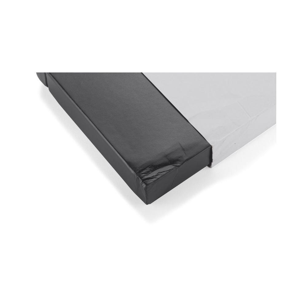 DIN A5 Portfolio aus PU. Block mit 120 Blatt (240 Seiten) liniertem Papier und farblich passendem Metallkugelschreiber. Schwarze Tinte.