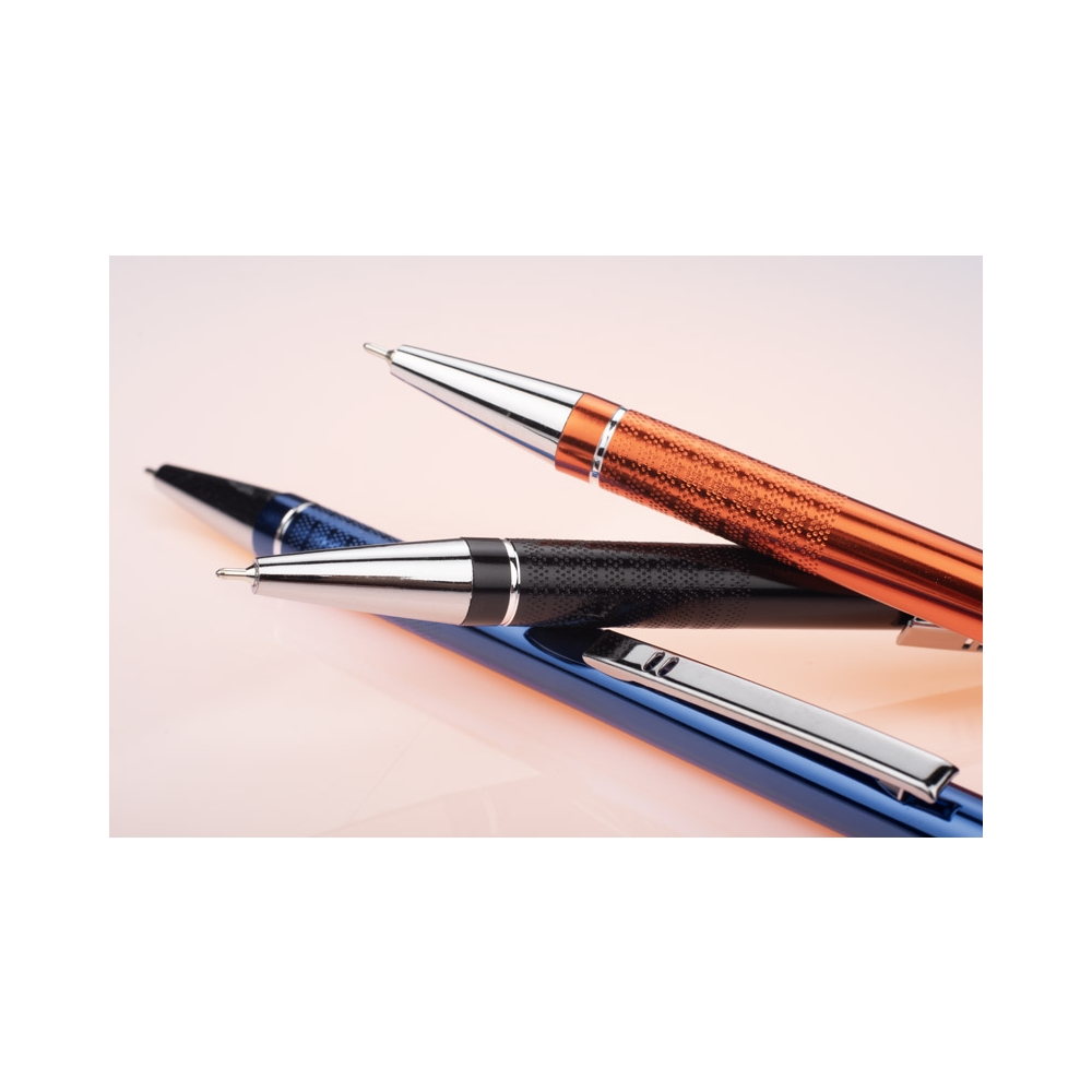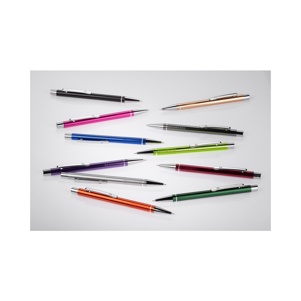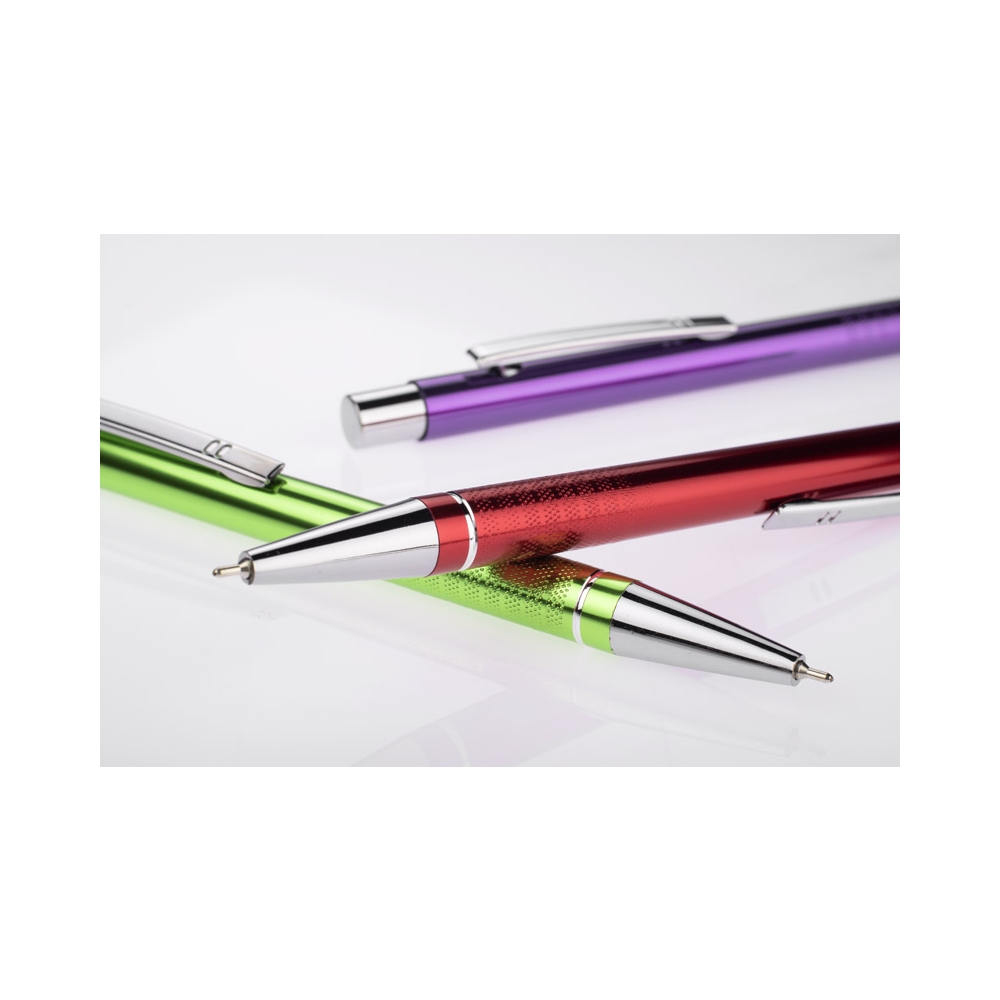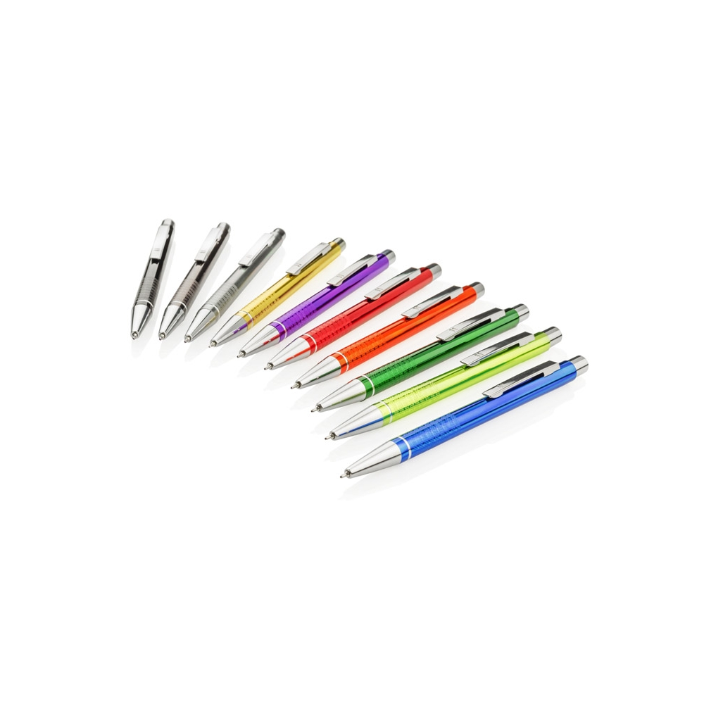 Artikel-Nr: ART87767N0001Aluminium Kugelschreiber mit eleganter Soft-Touch-Oberfläche. Hat einen stabilen Metallclip und ist in tollen Farben lieferbar. Blauschreibende Mine.