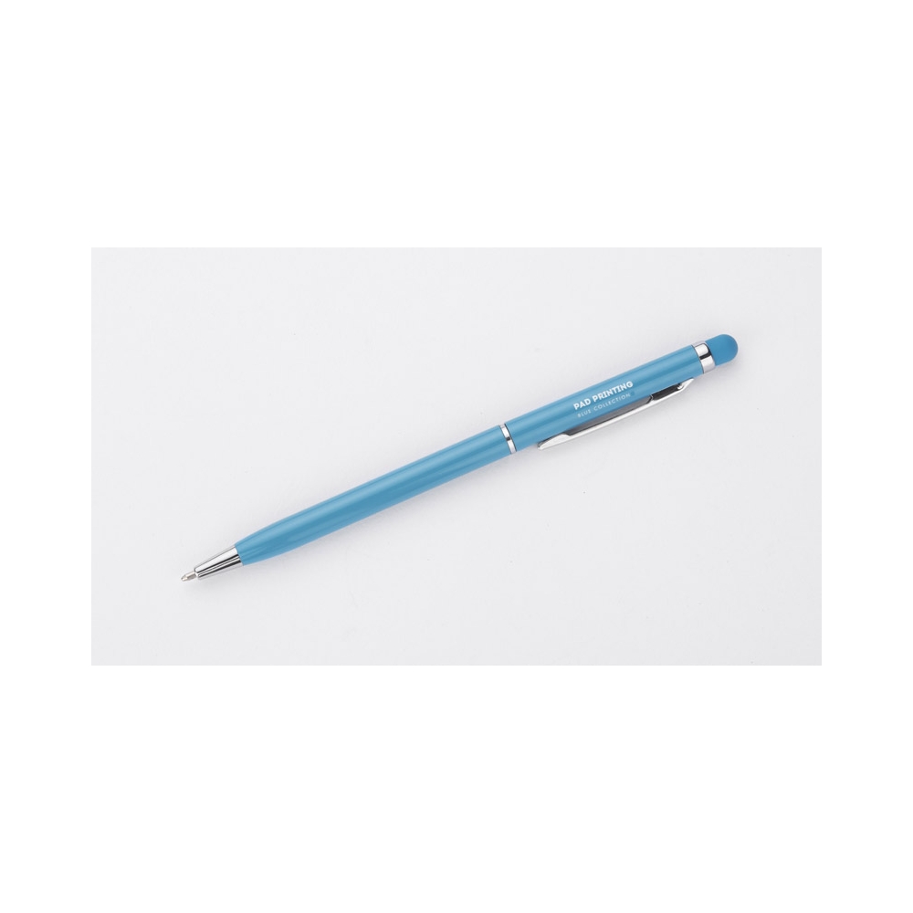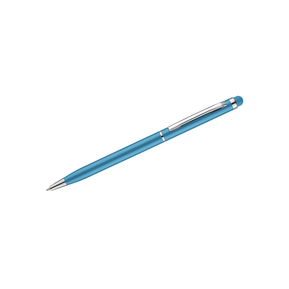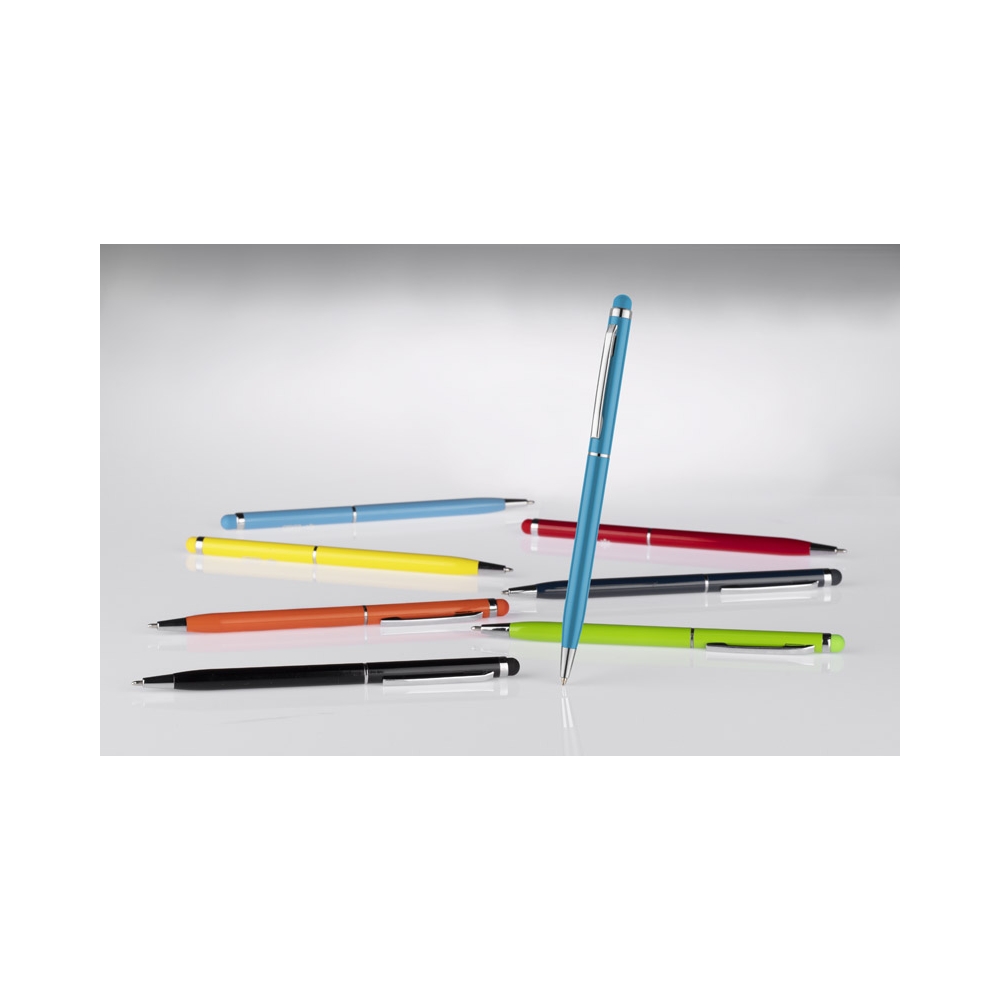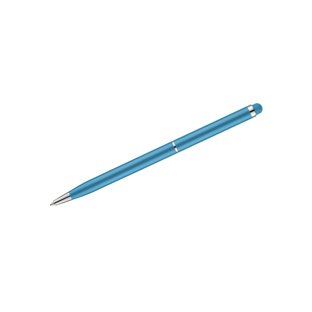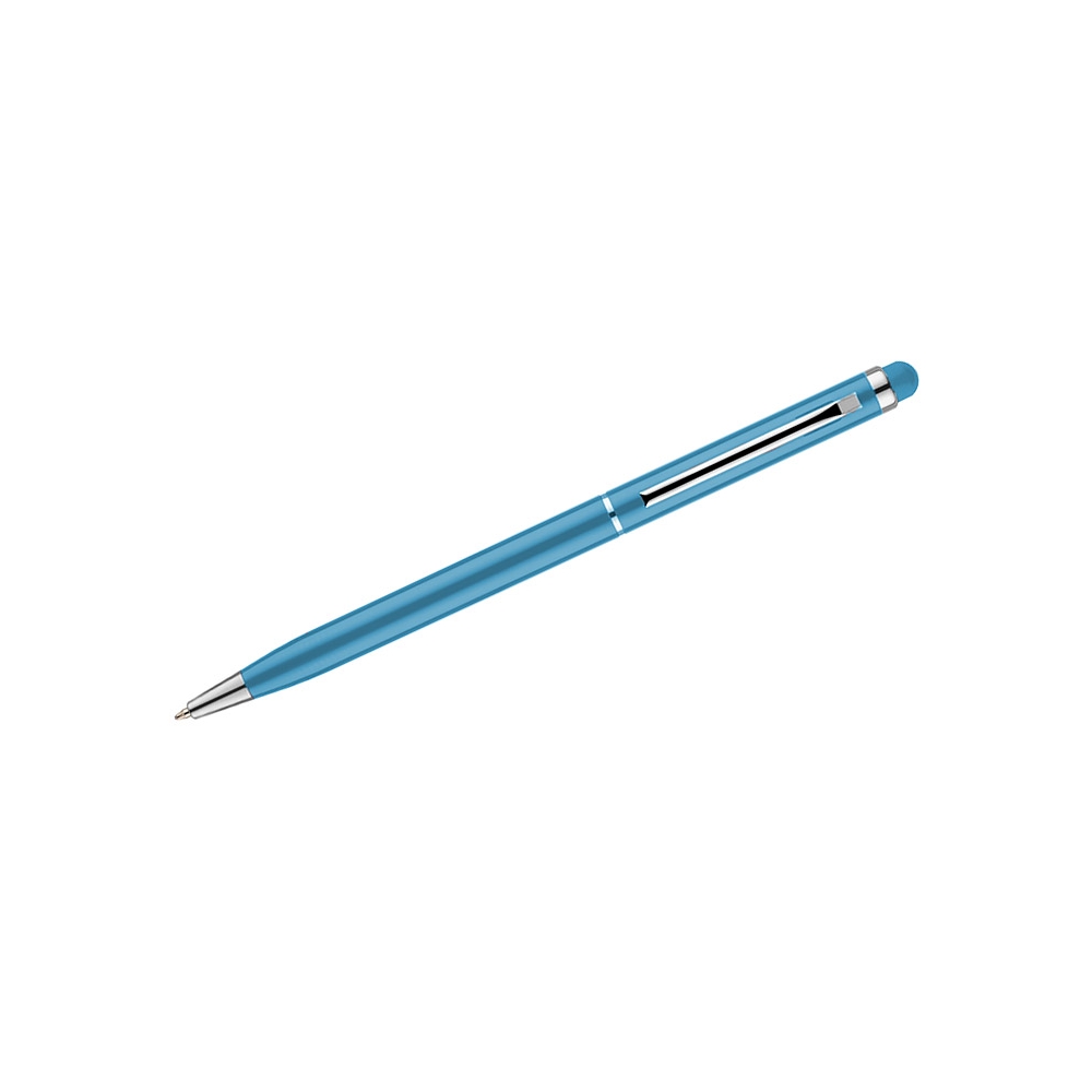 Neue, verbesserte Version eines sehr bekannten Modells. TIN 2 ist ein dünner, Metallkugelschreibermit einerfarbigen Touchspitze. Der Kugelschreiberverfügt über einen Twist-Mechanismus. Blaue Mine.