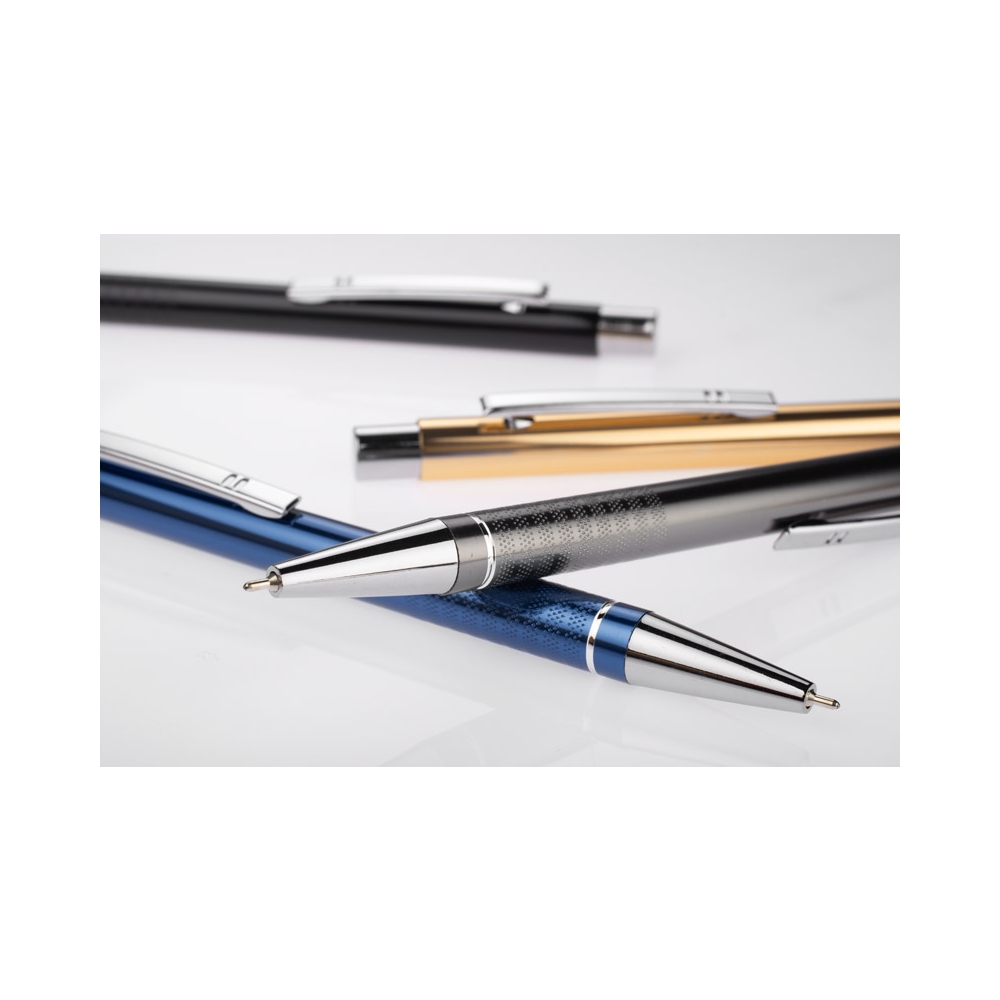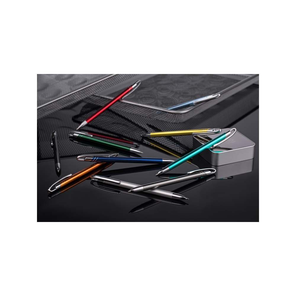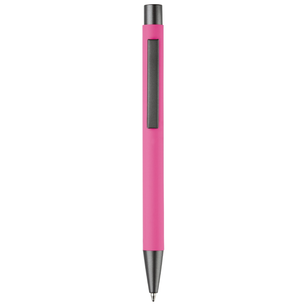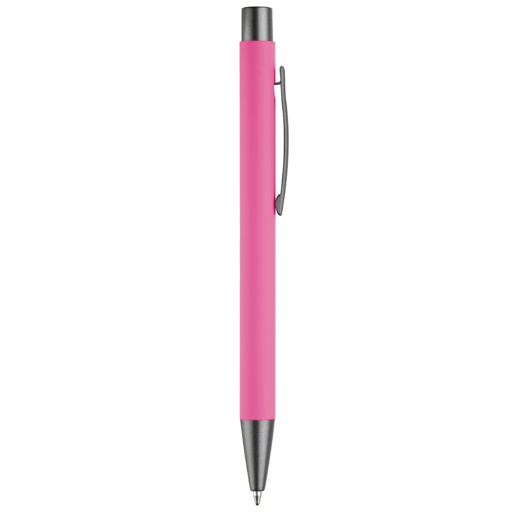 Aluminium Kugelschreiber mit eleganter Soft-Touch-Oberfläche. Hat einen stabilen Metallclip und ist in tollen Farben lieferbar. Blauschreibende Mine.