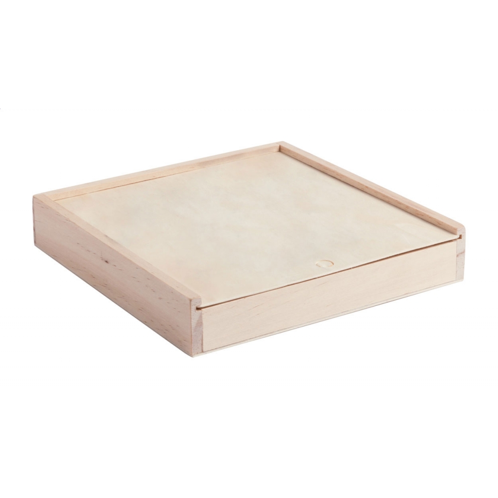 Sets aus verschiedenen Holzspielen: Mikado, Schach, Dame und Domino. Präsentiert in einer Holzkiste mit Schiebedeckel. Brett mit glatter Seite für die Personalisierung.