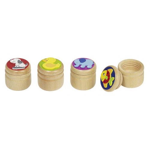 Fröhlich-bunte Holzdöschen für Milchzähne oder andere kleine Schätze. 6 Motive: Dino, Auto, Herz, Blume, Hahn und Schmetterling. Achtung! Nicht geeignet für Kinder unter 36 Monaten.