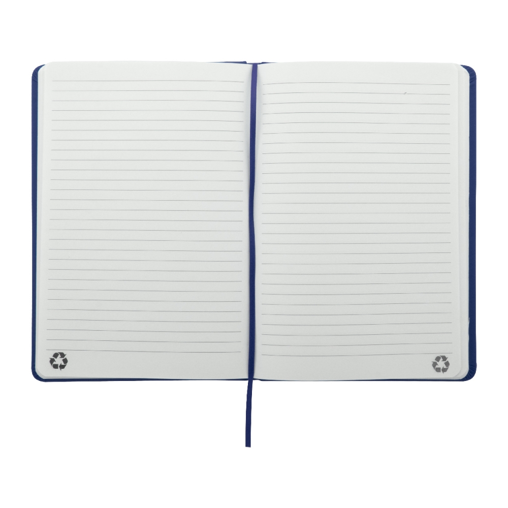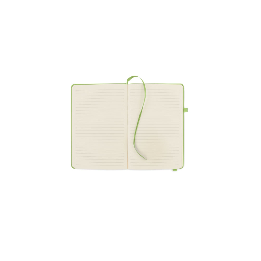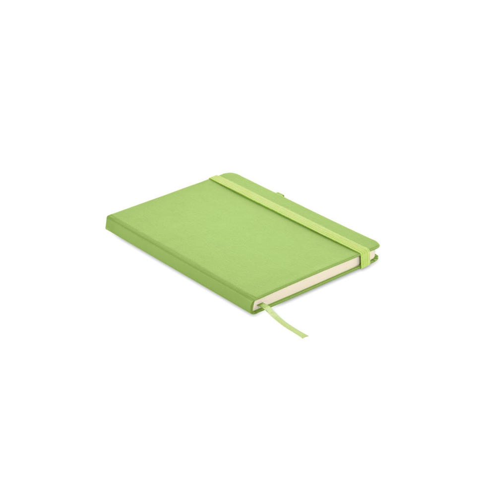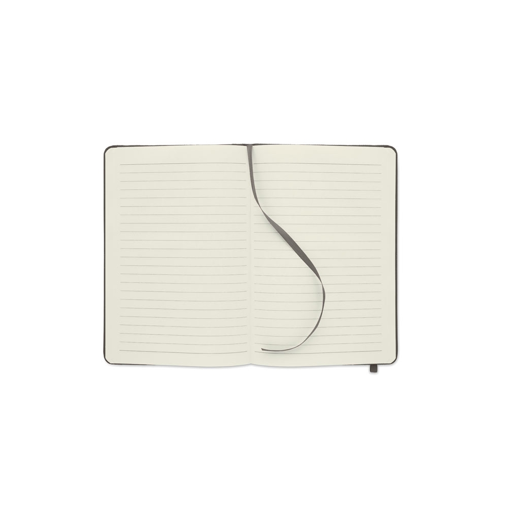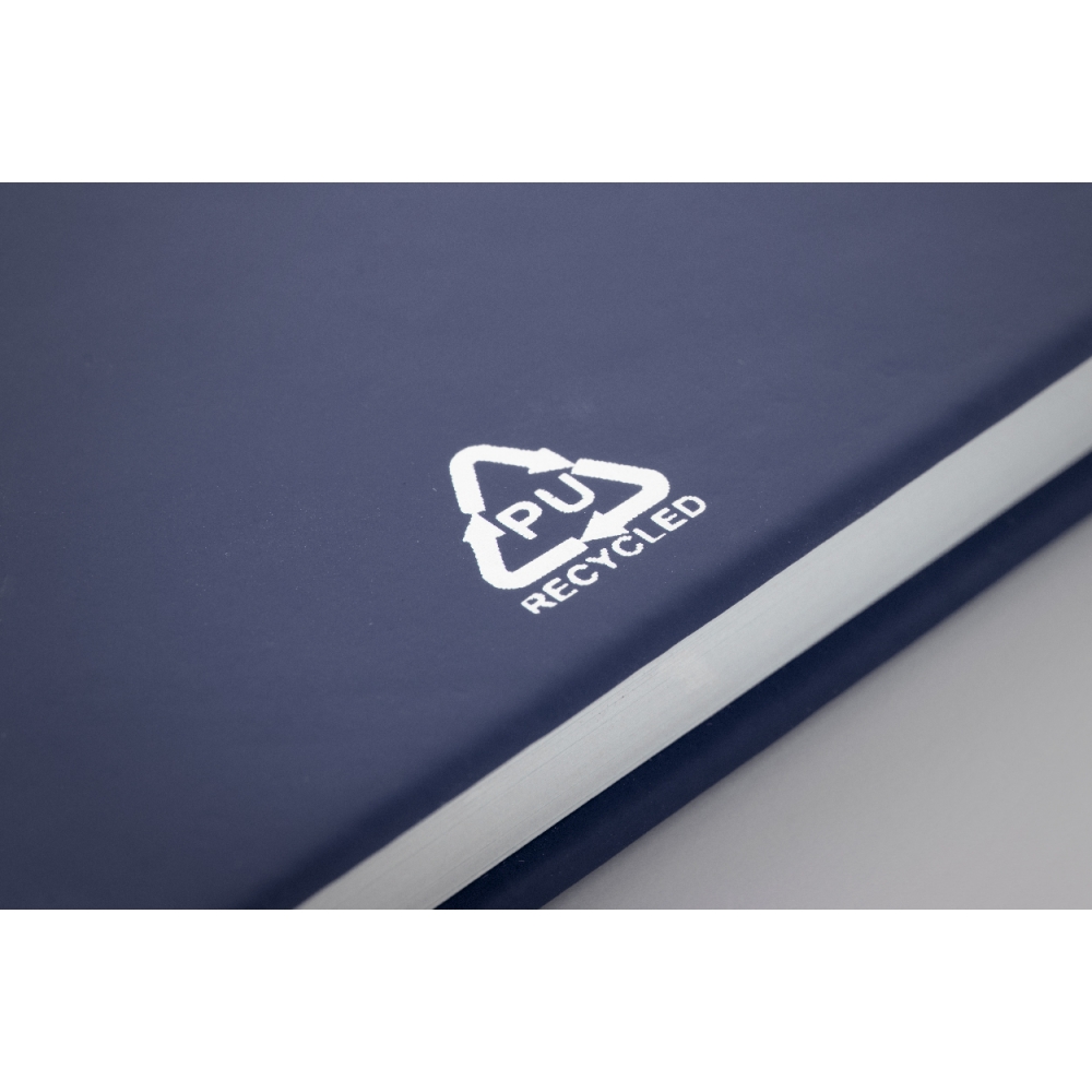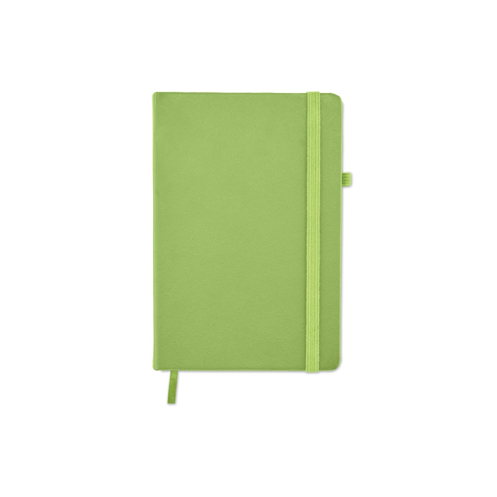 Artikel-Nr: AND800742-05Notizbuch mit recyceltem PU-Lederbezug und 100 linierten Blättern aus Recyclingpapier. Mit farblich passendem Lesezeichen und Gummiband. A6-Größe.