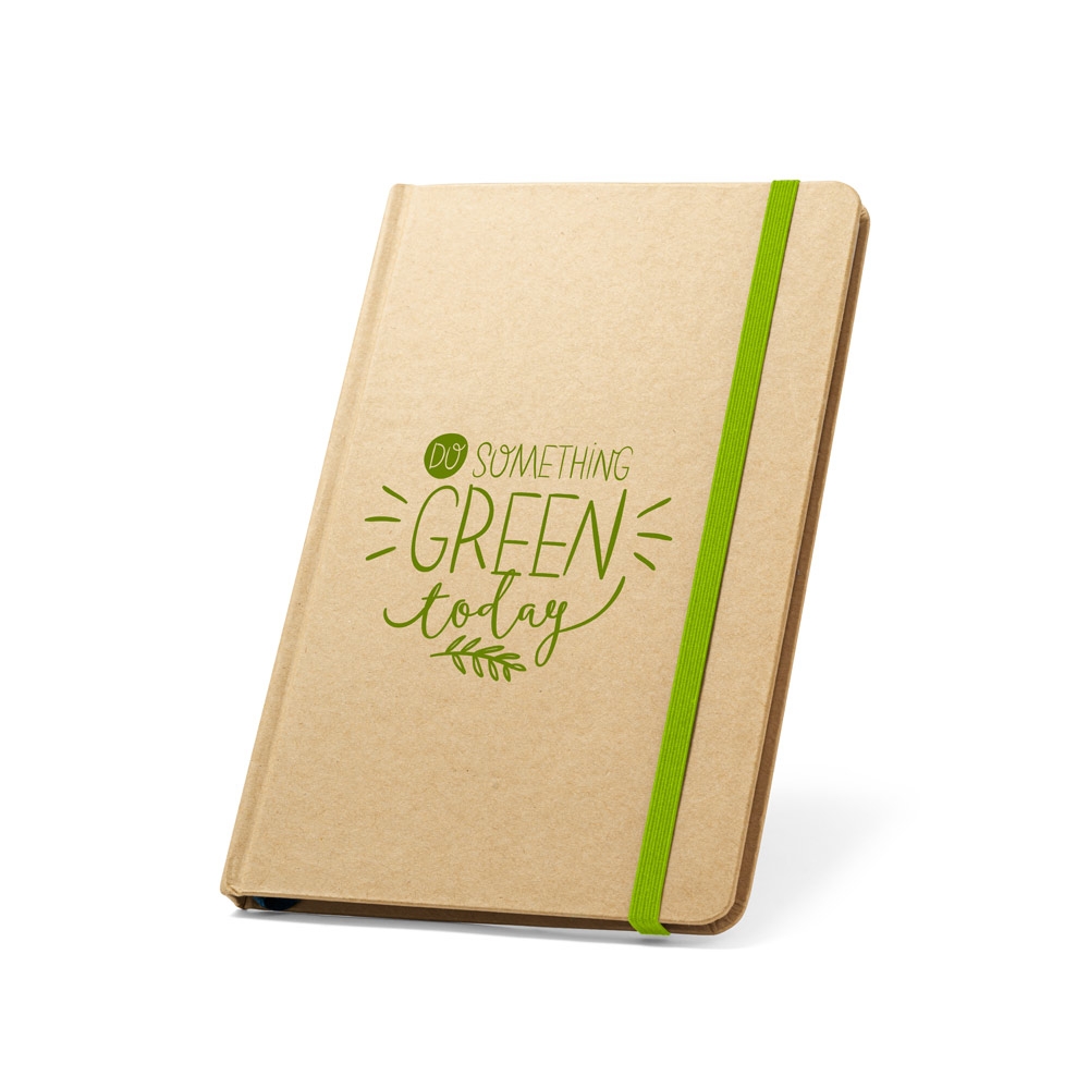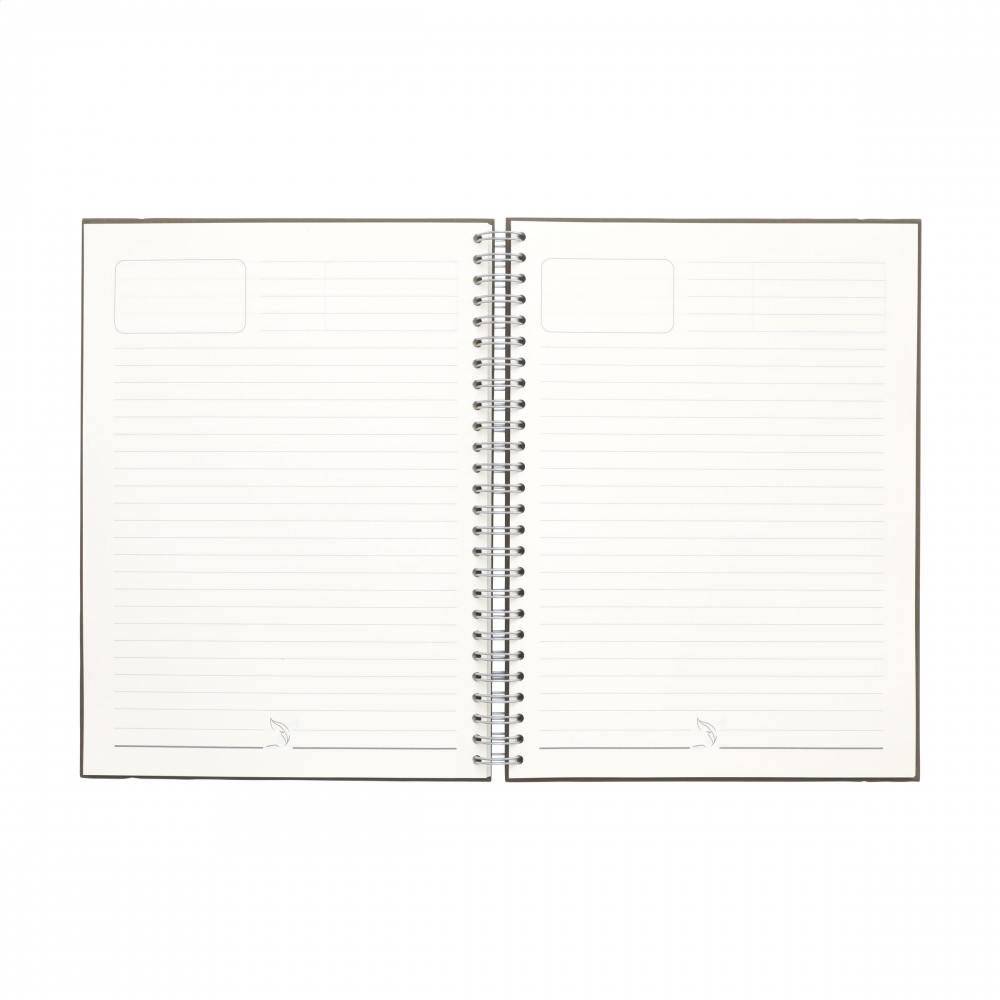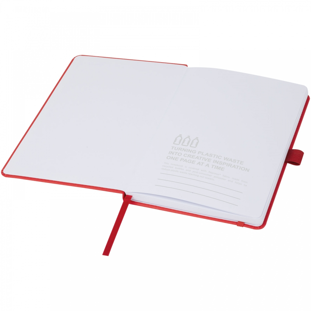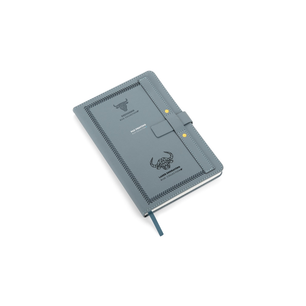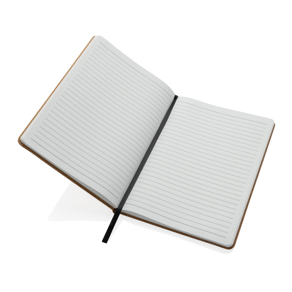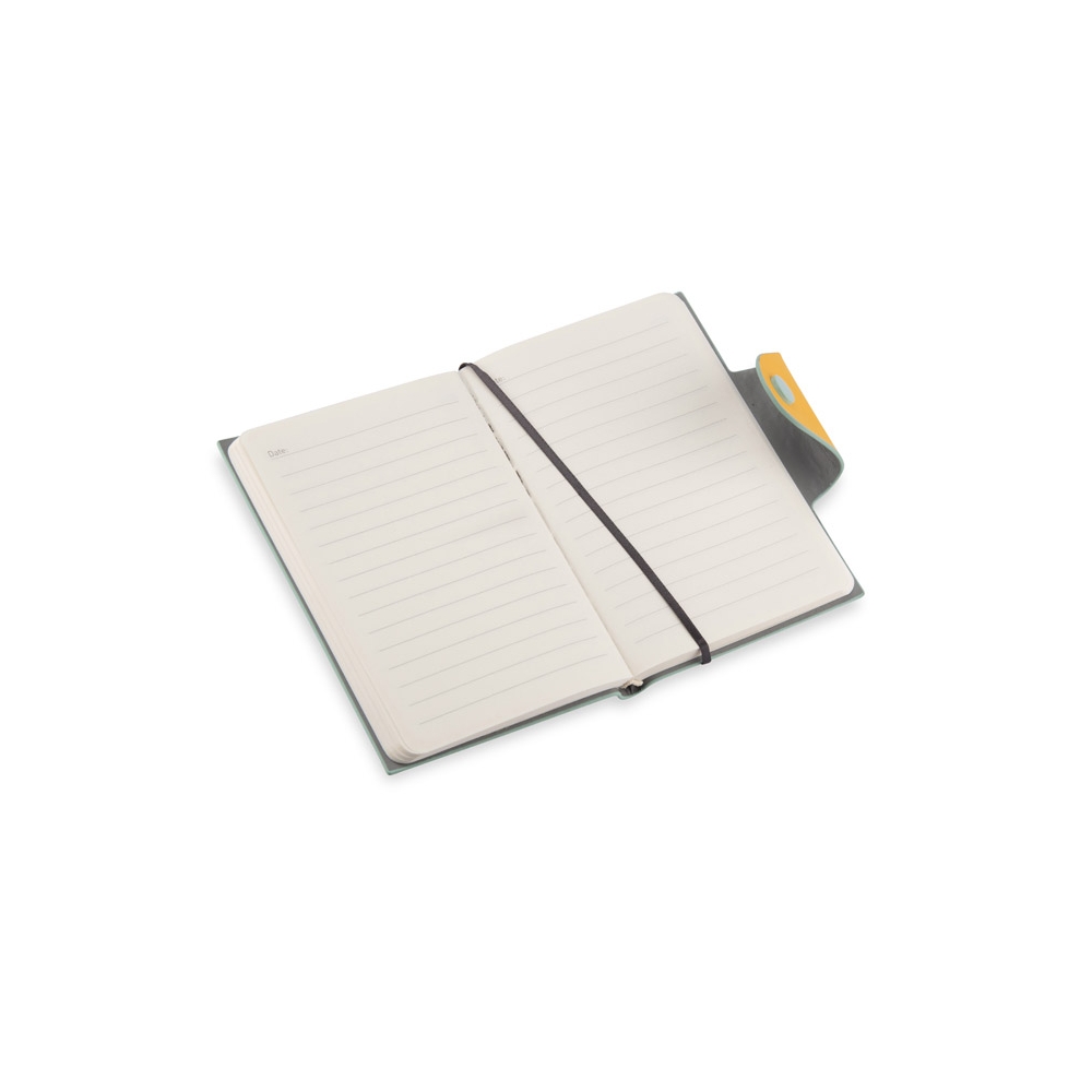Artikel-Nr: AND800742-05Notizbuch mit recyceltem PU-Lederbezug und 100 linierten Blättern aus Recyclingpapier. Mit farblich passendem Lesezeichen und Gummiband. A6-Größe.
