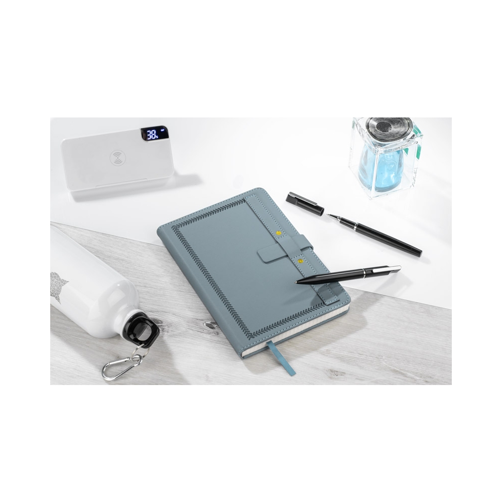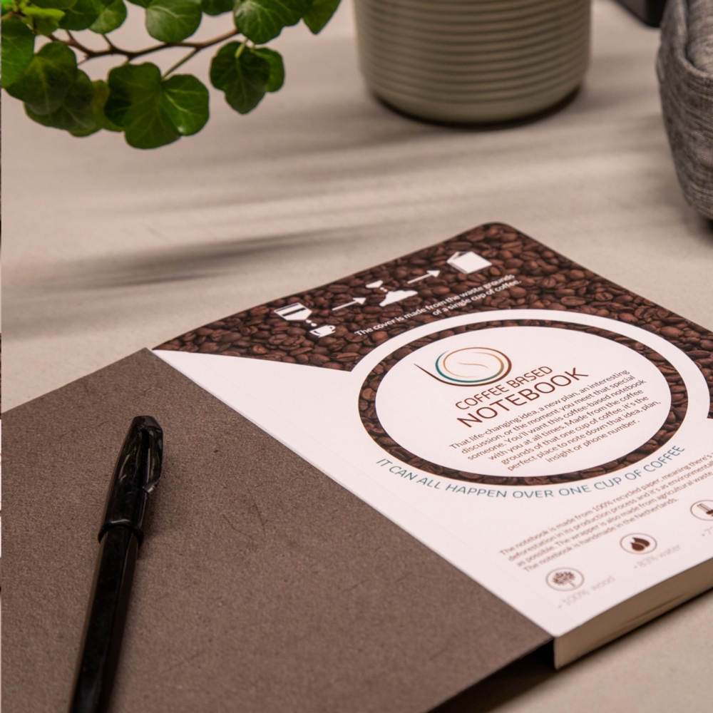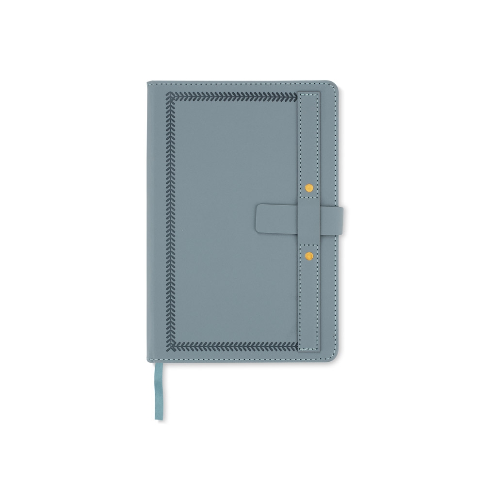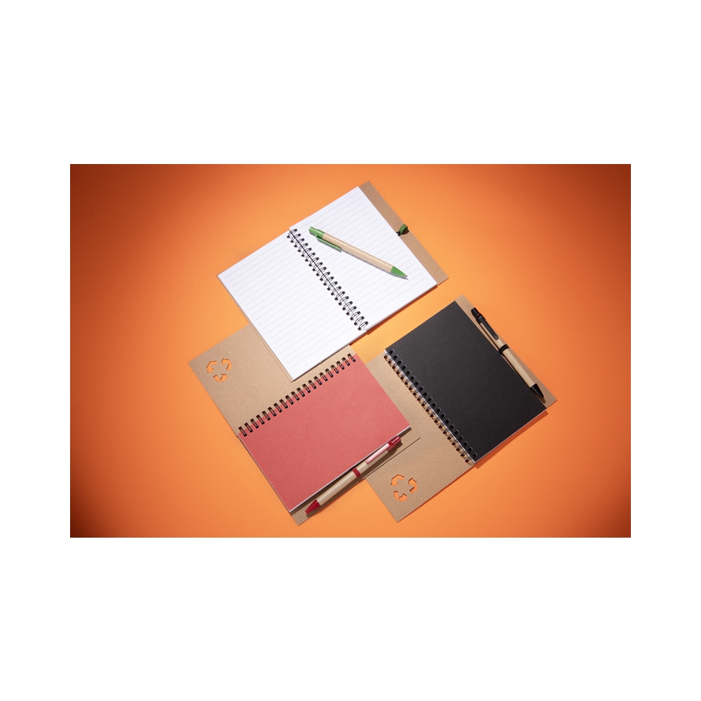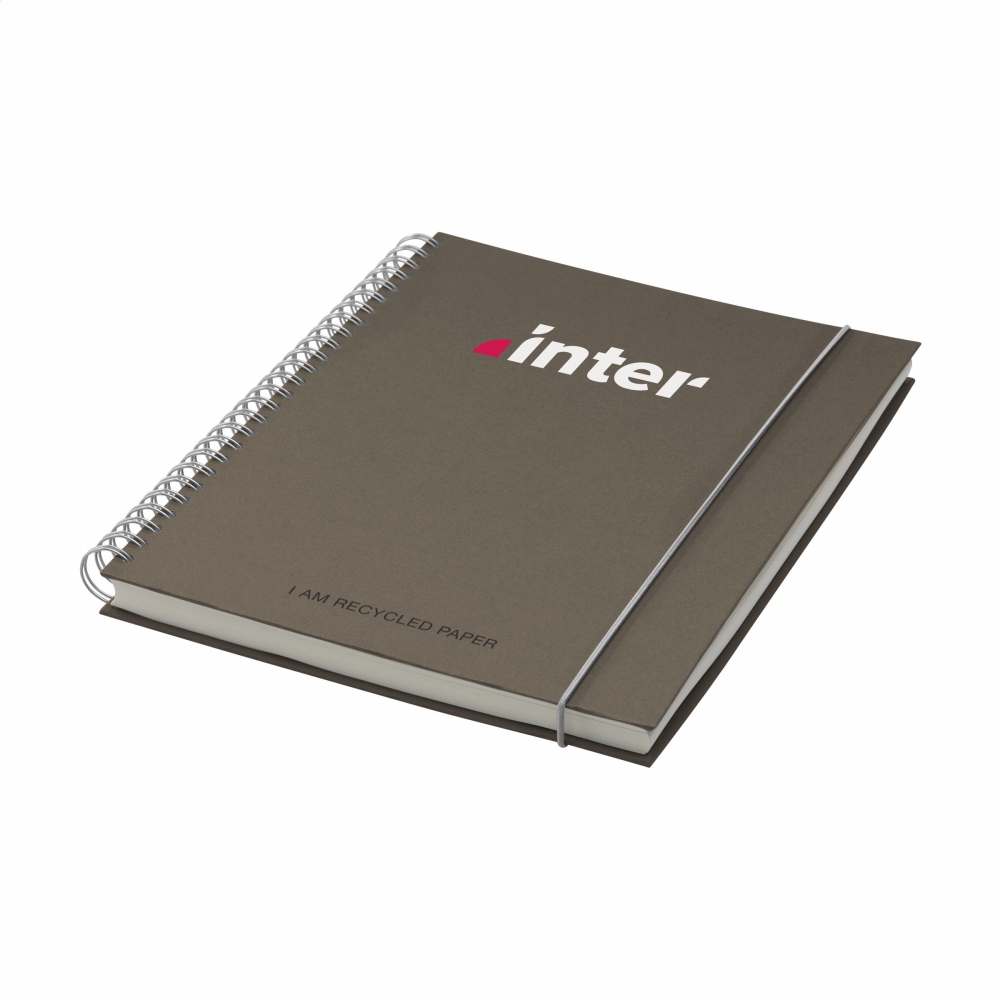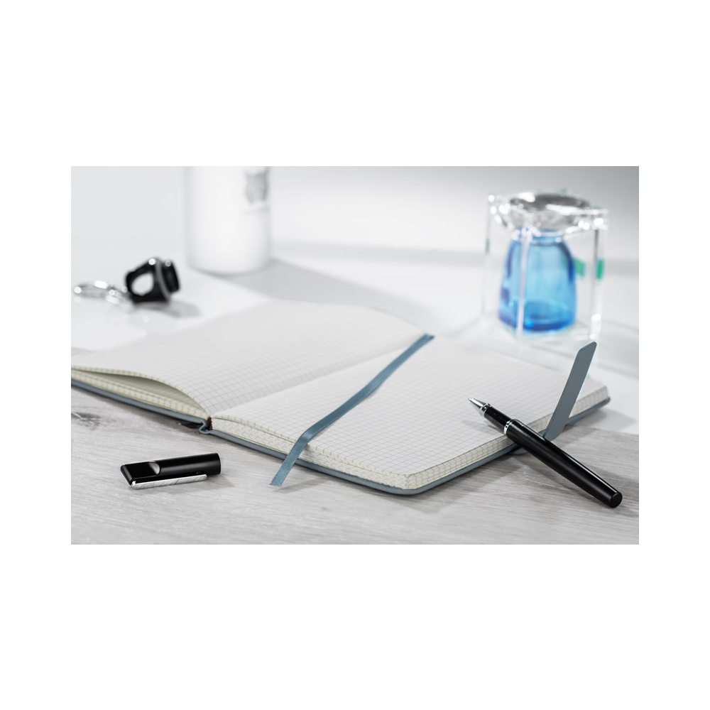 Artikel-Nr: AND800742-05Notizbuch mit recyceltem PU-Lederbezug und 100 linierten Blättern aus Recyclingpapier. Mit farblich passendem Lesezeichen und Gummiband. A6-Größe.