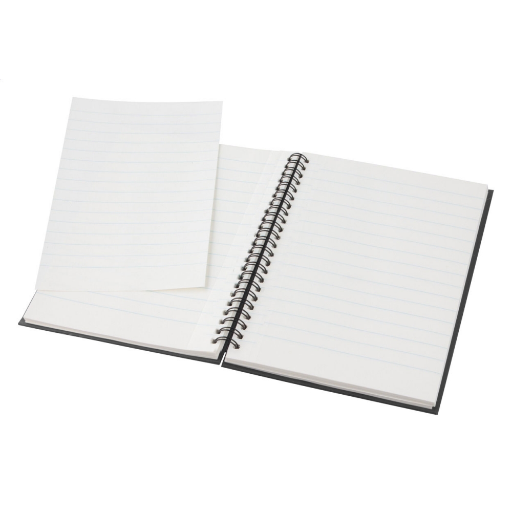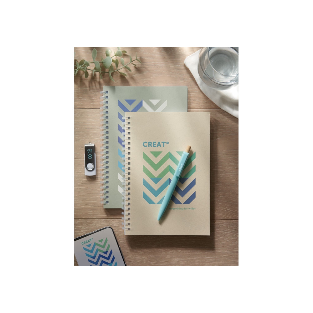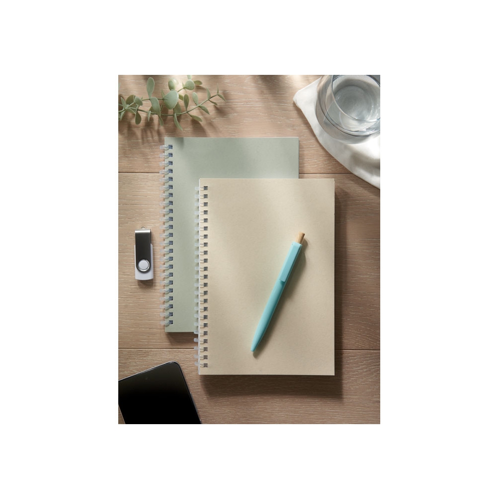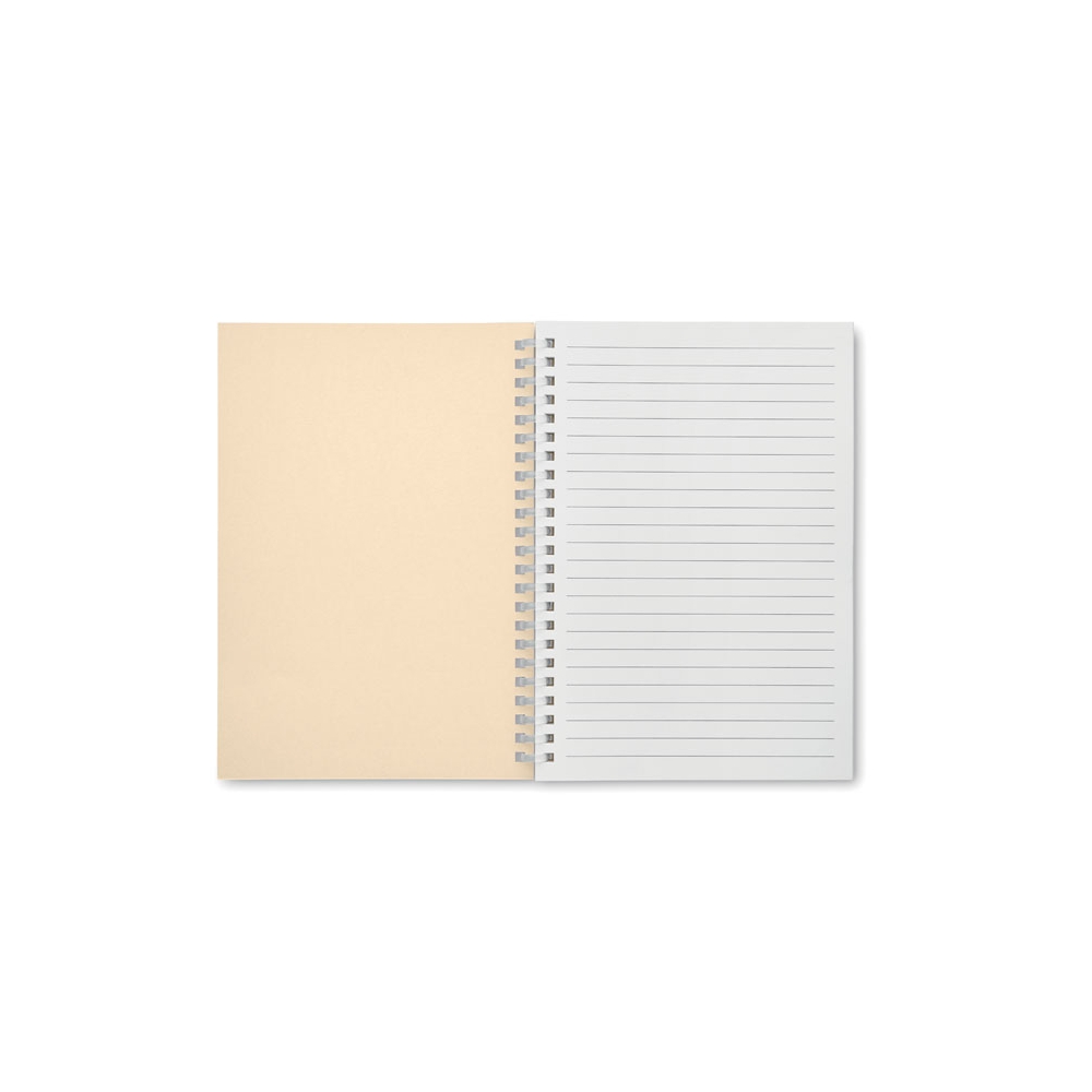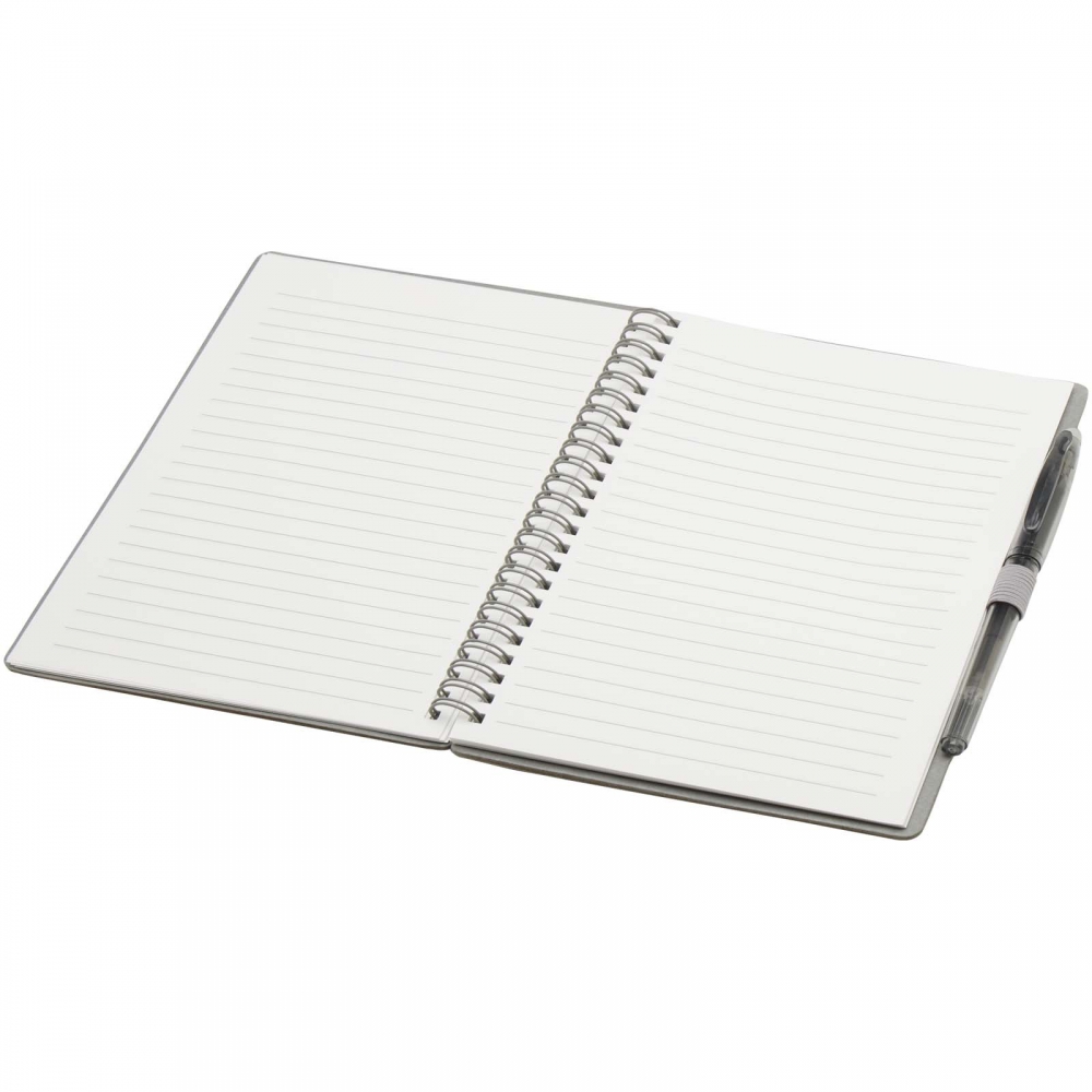 Artikel-Nr: CLP263642-002Notizbuch aus recyceltem Material mit ca. 70 Blatt/140 Seiten cremefarbenem, liniertem Papier (70 g/m²) und kartoniertem Umschlag. Gebunden in einer starken, metallenen Spiralbindung. Inkl. blauschreibendem Kugelschreiber. FSC Mix zertifiziert.