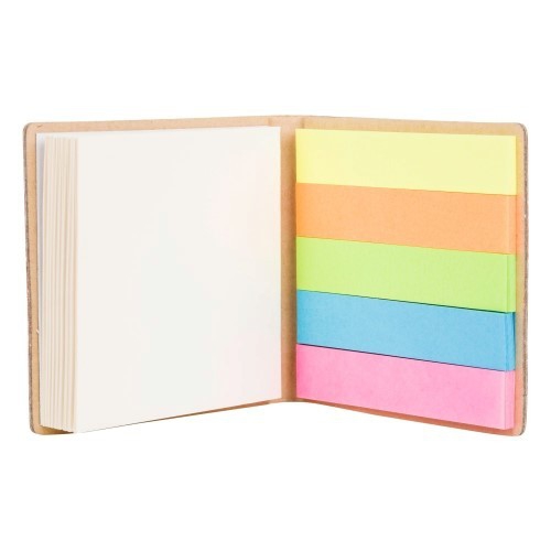 Notizhalter mit festen Einbänden aus widerstandsfähigem recyceltem Karton. Enthält 200 glatte Blätter und 125 Mini-Haftnotizen.
