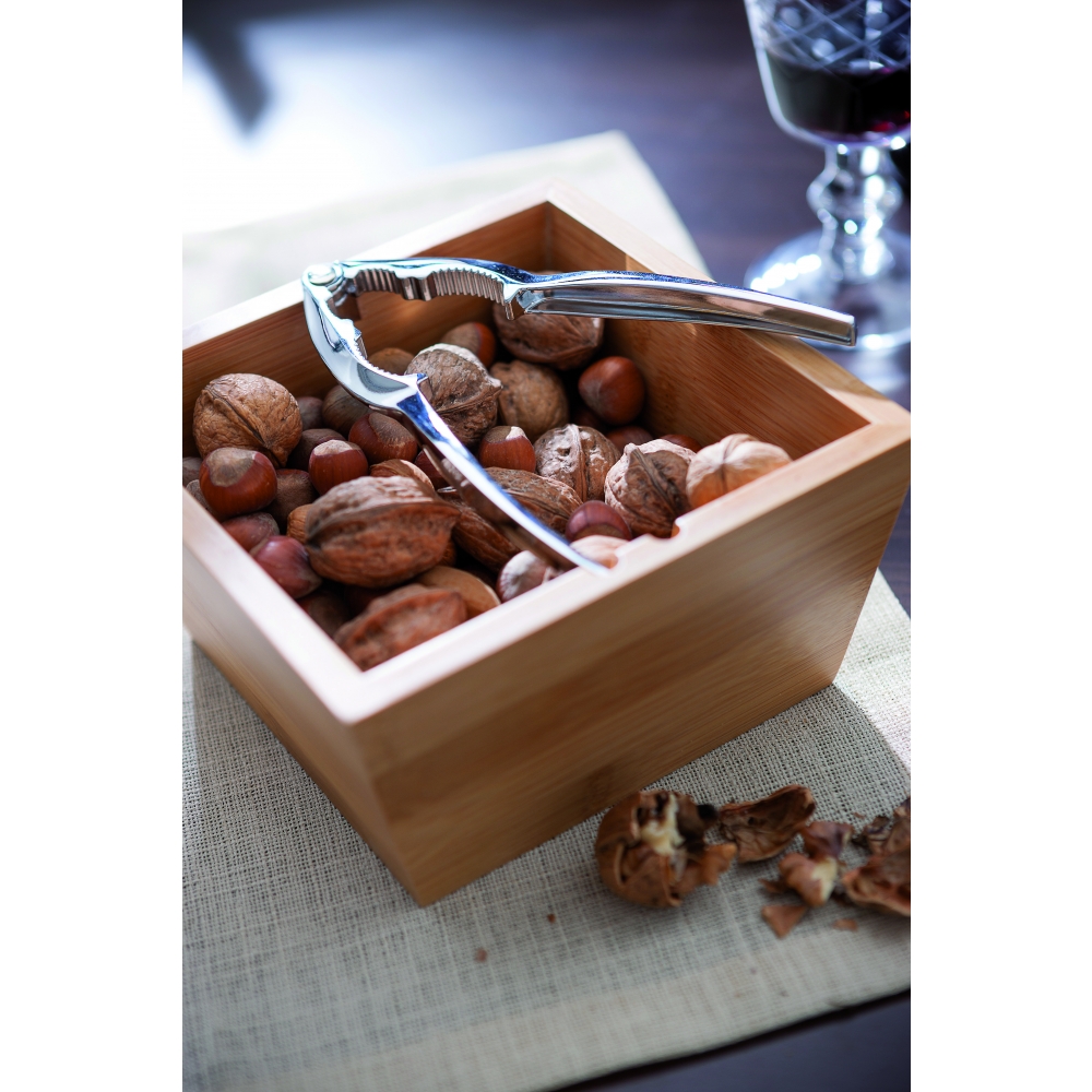 Artikel-Nr: 449004328Praktisch verstaut sind die Nüsse im Glas. Dieses kann nach Gebrauch zusammen mit dem Edelstahl Nussknacker wieder verschlossen und auch nachgefüllt werden. Weckglas (290 ml) mit ca. 90 g Mischnüssen, Nussbreaker aus Edelstahl, Schleife 'Frohe Weihnachten' oder 'Merry Christmas‘. Platz für den Werbeeindruck ist auf dem Standardmotiv der Innenkarte oder eine eigene Gestaltung, jeweils ab 250 Stück.