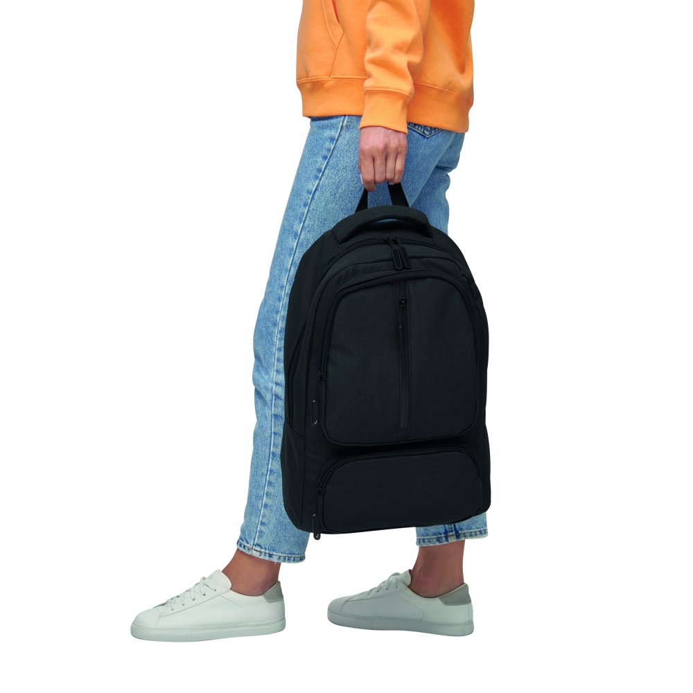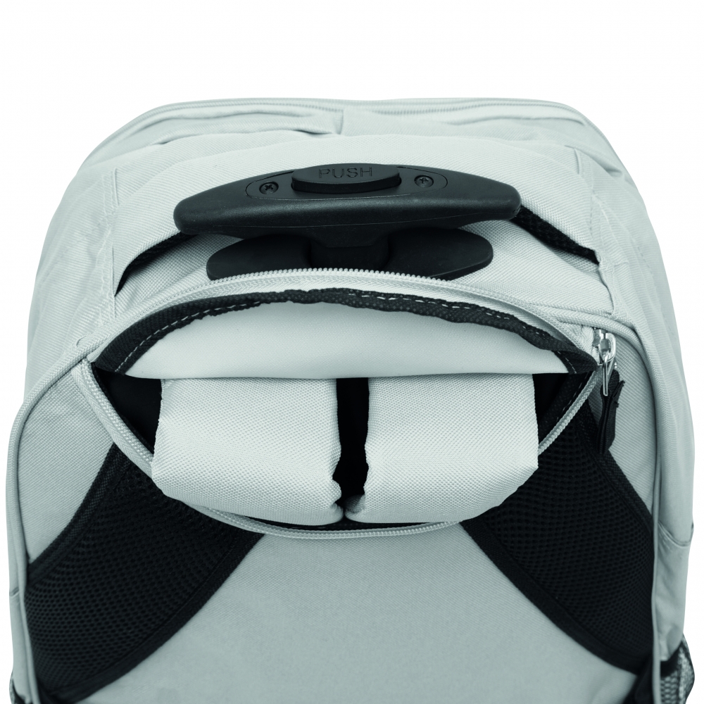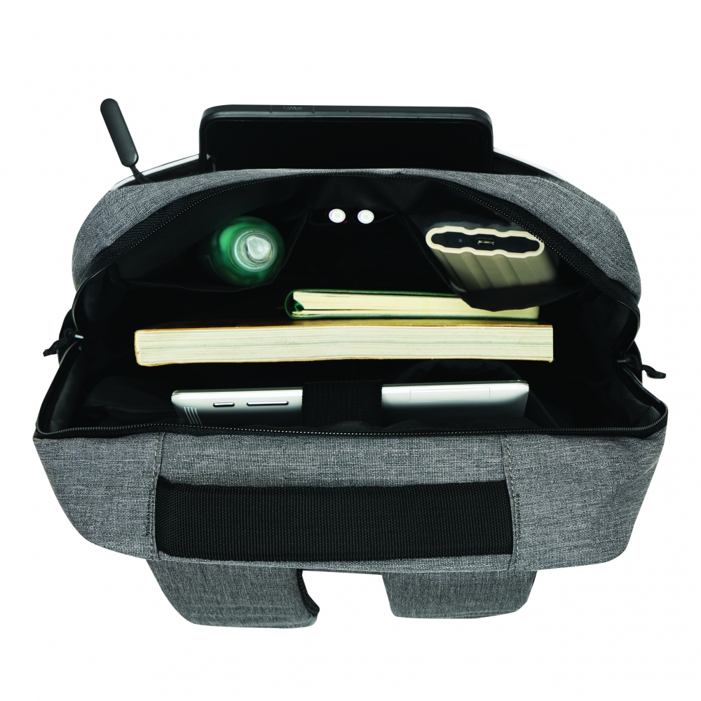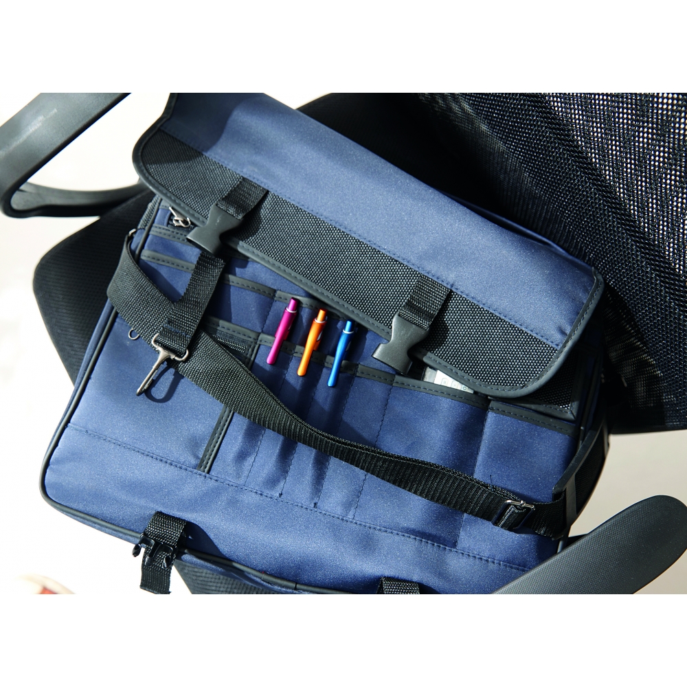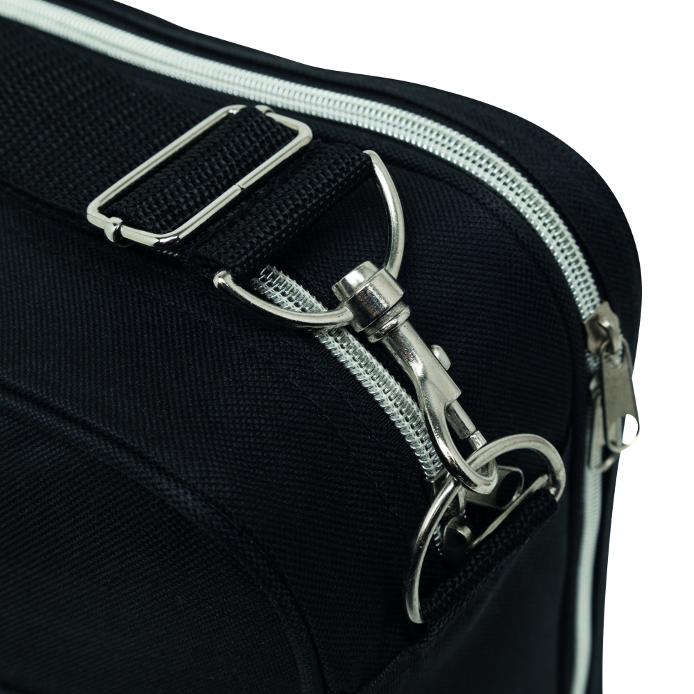 Artikel-Nr: HLF1813342-652Geräumiges Reißverschluss-Hauptfach mit Organizer-Funktion und festem Einlegeboden; Reißverschluss-Vortasche mit Reflektorelement; seitliche Netzfächer; rückseitiges Schuhfach; Handgriffe mit gepolsterter Griffmanschette; abnehmbarer, längenverstellbarer Schultergurt