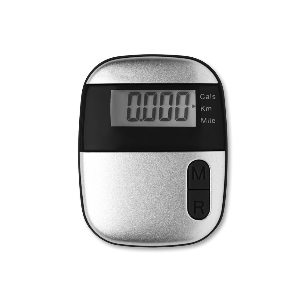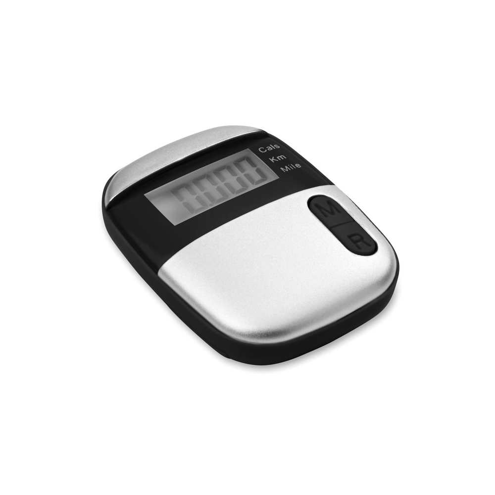 Pedometer mit LCD Display und Gürtelclip. Zählt Meilen, Kilometer und Kalorien. Inkl. 1 Knopfzellbatterien. Abmessung: 5,3x4,3x2,4 cm. Druckgröße: 22x12 mm. Erhältlich in den abgebildeten Farben.