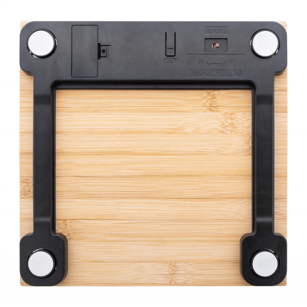 Artikel-Nr: AND864100Digitale Personenwaage mit Wiegefläche aus Bambus. Tragkraft: 150kg, Einteilung: 0,1kg, Maßeinheiten: kg / lb / st. Mit integriertem, wiederaufladbarem Akku. Inklusive USB-Ladekabel.