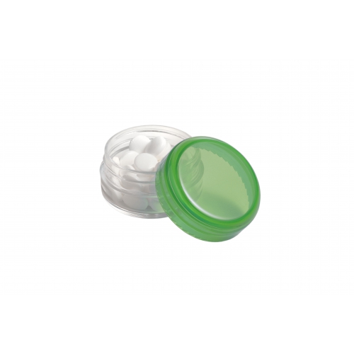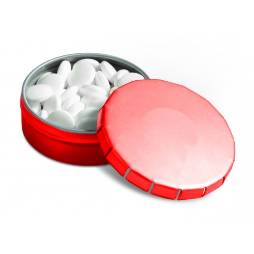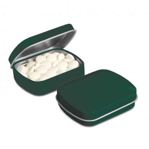 Praktische Dose mit Pfefferminz. Inhalt: ca. 25 g.