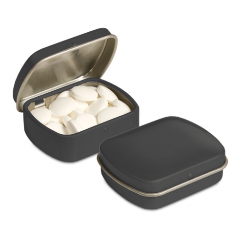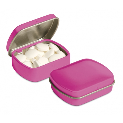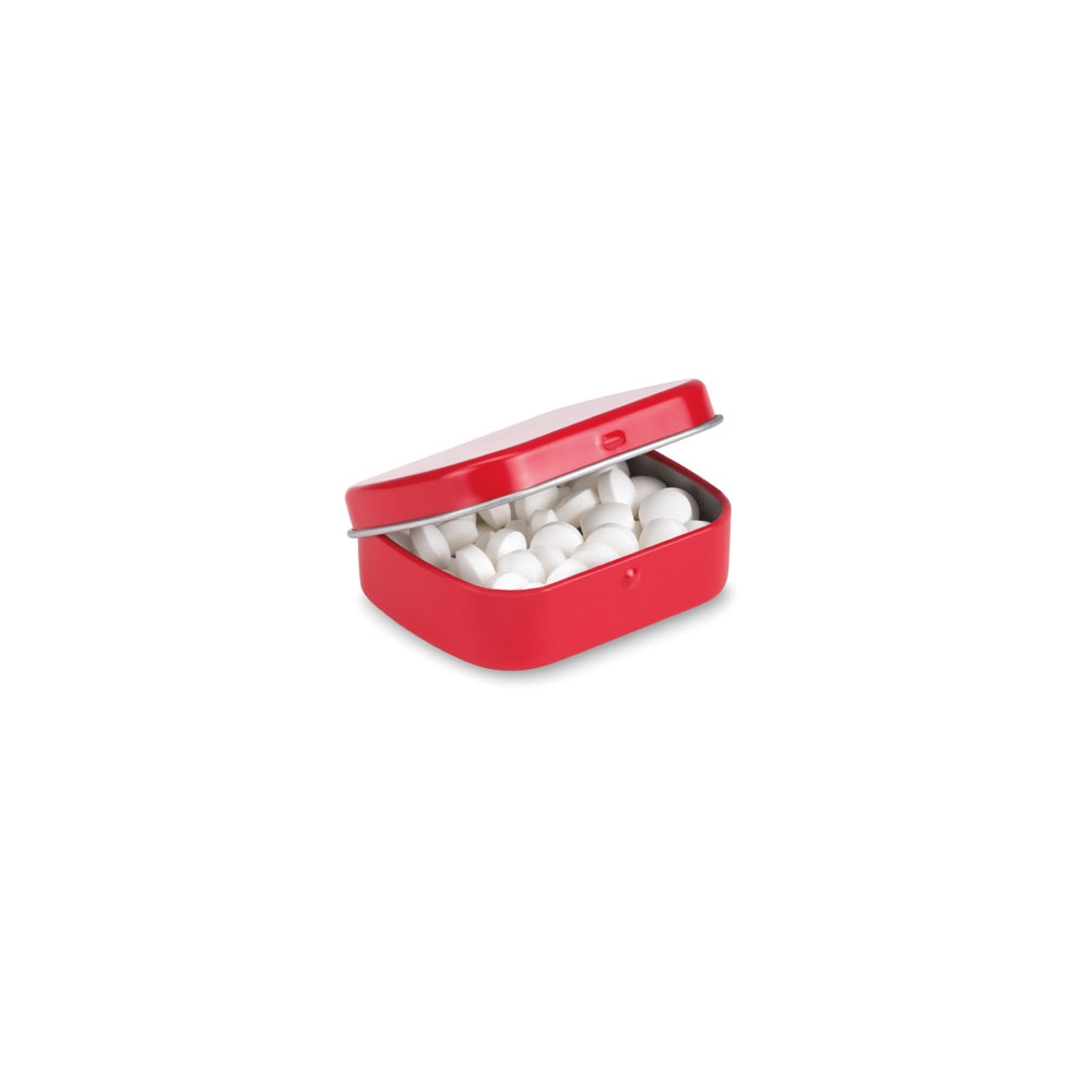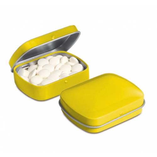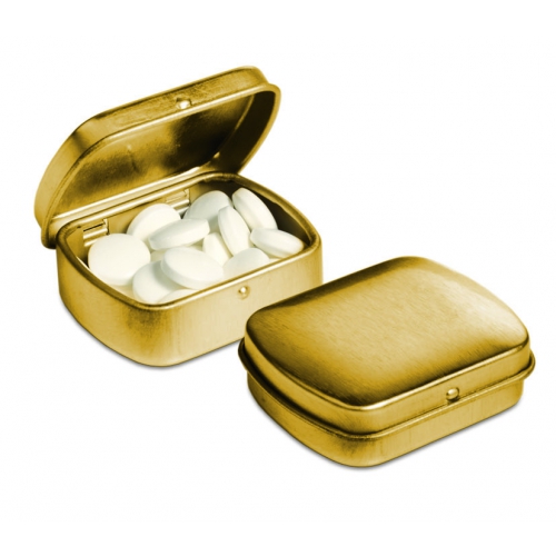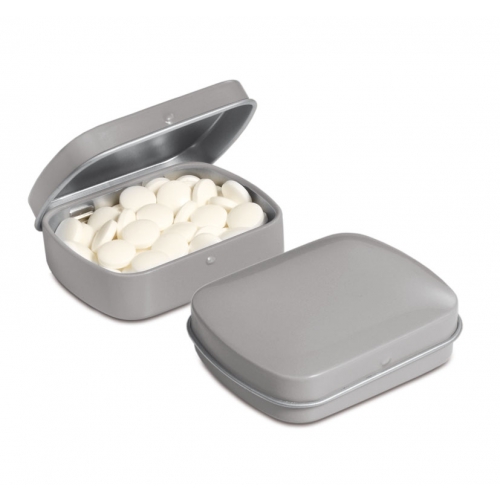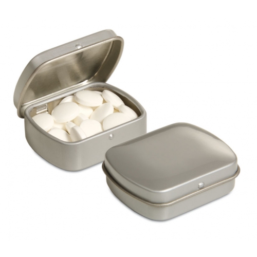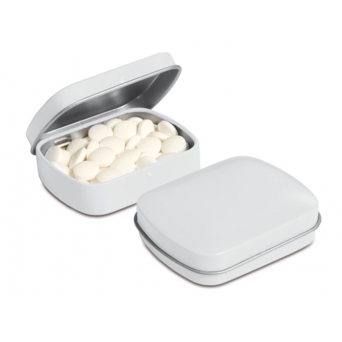 Beliebter Werbeartikel auf Messen und Großveranstaltungen. Die Mini-Rechteckdose ist in weiß oder silber erhältlich. Inhalt: ovale Pulverpastillen 20 g (Pfefferminz) oder Mini Pulverpastillen 20 g (Pfefferminz) oder Mini-Dragees 25 g (Pfefferminz, Frucht) oder Mini-Pastillen ohne Zucker 20 g (Pfefferminz) Größe: 64 x 50 18 mm Individualisierung: Digitaldruck