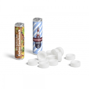 Bunte Werbe-Bonbons in Blisterverpackung - In der Aufmachung einer Medikamentenschachtel - individuell gestaltbar
