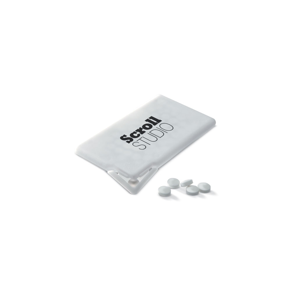 Pfefferminzspender im Kreditkartenformat. Inhalt: 8 g.