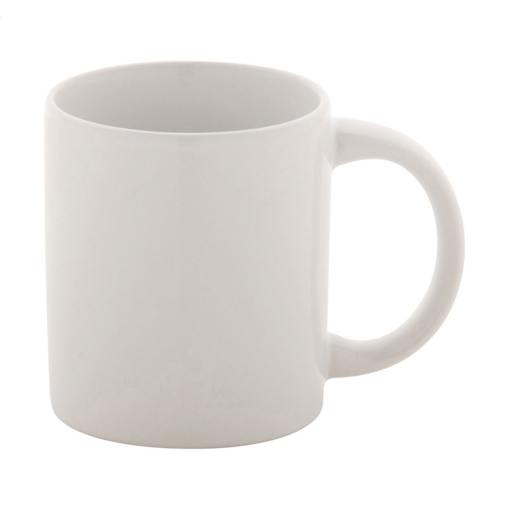 Gerader Porzellanbecher mit einer großen Druckfläche. Egal ob Rundumdruck oder ein Druck auf beiden Seiten, der Preis bleibt gleich.